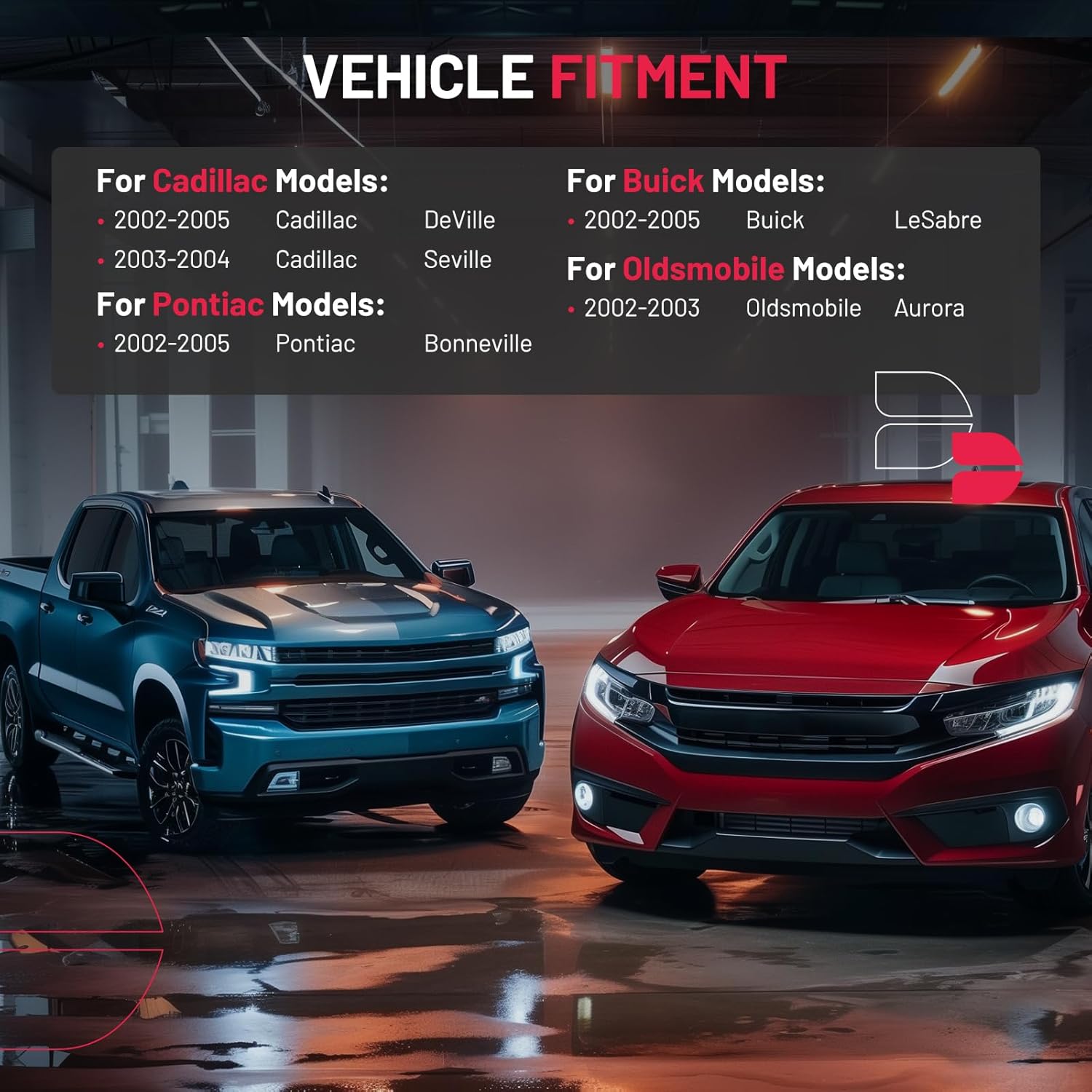 - Informações de Compatibilidade: Este motor de ventilador é compatível com os modelos Buick 2002-2005 LeSabre; Cadillac 2002-2005 DeVille, 2003-2004 Seville; Oldsmobile 2002-2003 Aurora; e Pontiac 2002-2005 Bonneville. É essencial confirmar a compatibilidade de acordo com o ano, marca e modelo do seu veículo, além do número OE da peça substituível.