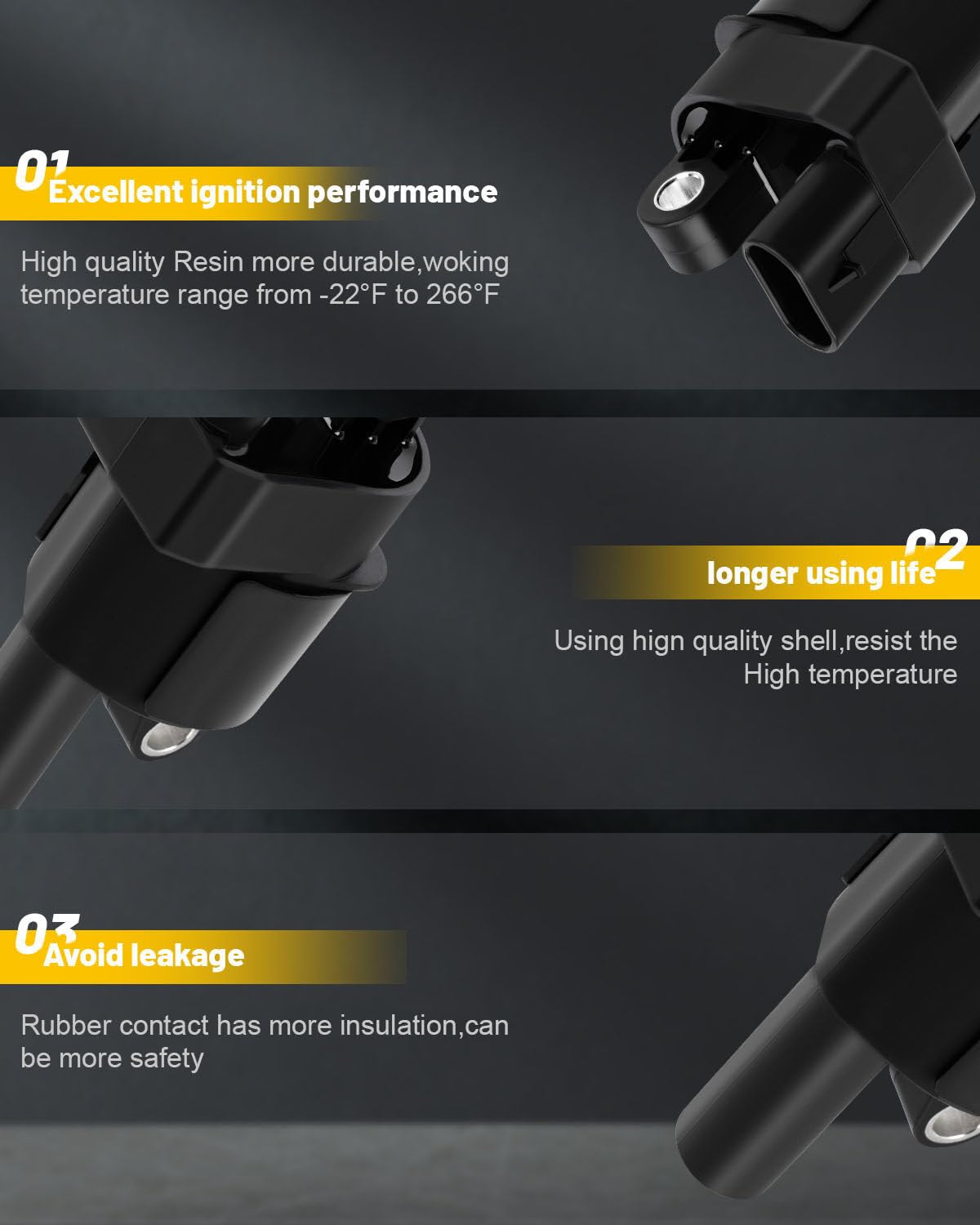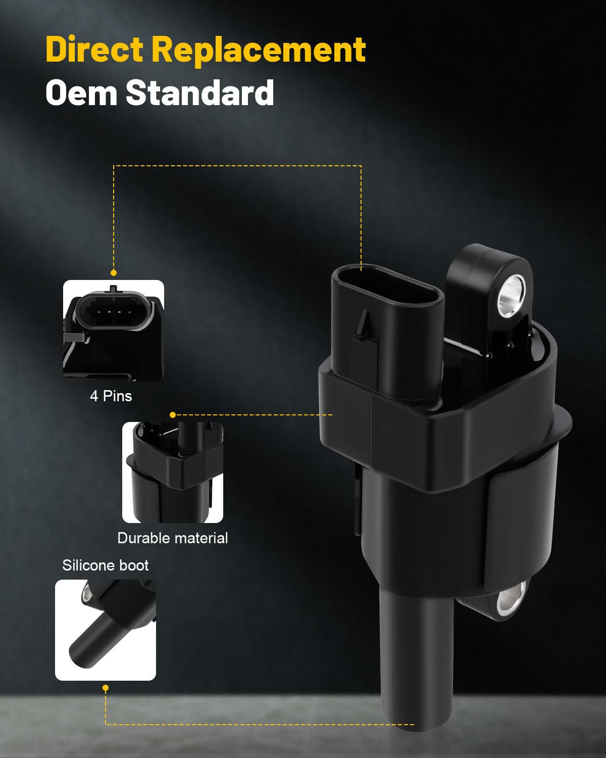 - [PACOTE DE BOBINA DE IGNIÇÃO DE SUBSTITUIÇÃO] – Este pacote de bobinas de ignição automotivas substitui bobinas de ignição OEM defeituosas. Fabricado com materiais de qualidade OEM, este conjunto de bobinas garante uma instalação fácil e rápida, resolvendo problemas como tremores no carro, luz de verificação do motor, marcha lenta irregular e falhas de ignição causadas por bobinas de ignição desgastadas ou danificadas. Restaure o desempenho e a experiência de condução do seu veículo substituindo as bobinas de motor defeituosas.
