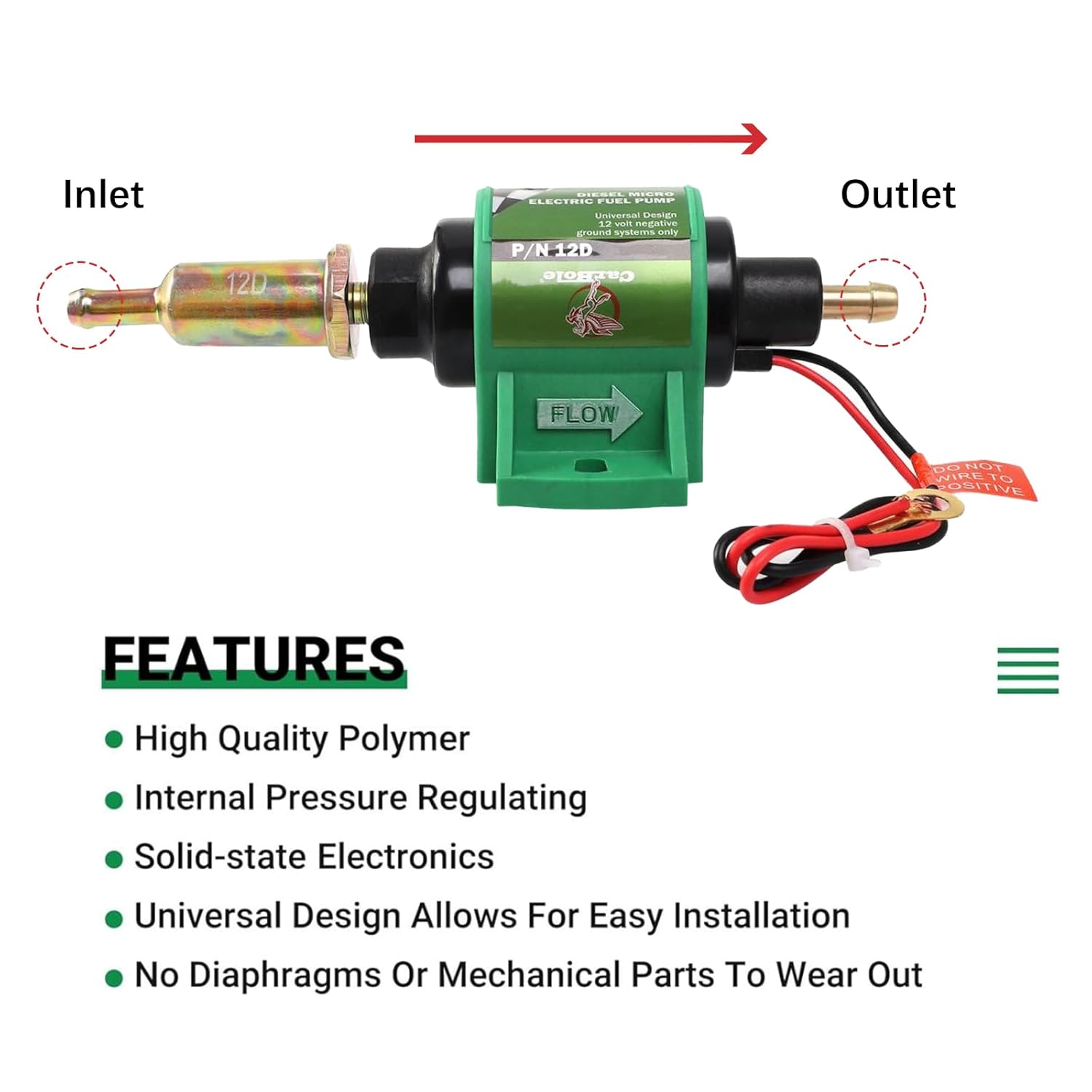Com uma pressão de operação de 4 a 7 PSI e uma voltagem de 12V, esta bomba oferece um fluxo impressionante de até 35 galões por hora (GPH). O pacote inclui acessórios essenciais, como um filtro inline de 100 micrômetros e parafusos de montagem, facilitando a instalação e garantindo que você tenha tudo o que precisa para um funcionamento otimizado. A CarBole 12D não apenas reduz o risco de vapor lock e inundações, mas também se destaca como uma bomba de transferência ou bomba de reforço, proporcionando uma experiência de uso sem complicações.