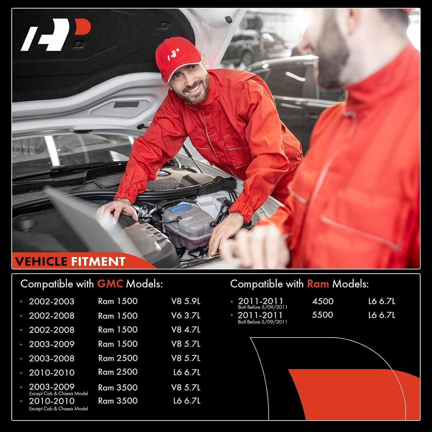 – Dodge Ram 1500: 2002-2003 (5.9L), 2002-2008 (3.7L, 4.7L), 2003-2008 (5.7L), 2003-2009 (5.7L), 2010 (6.7L)