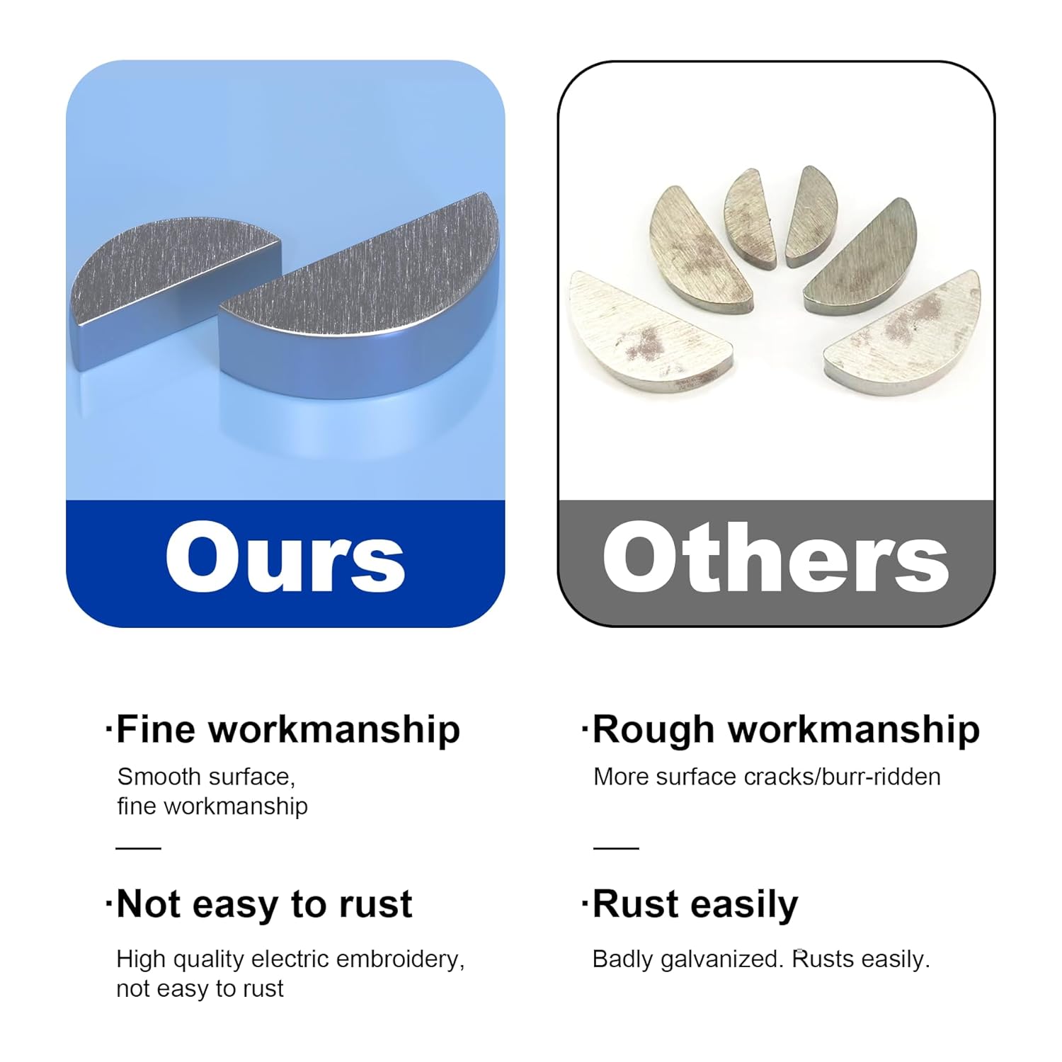 Cada chave Woodruff é fabricada em aço carbono de alta dureza, garantindo resistência ao desgaste e à corrosão. Este material de primeira linha proporciona uma excelente resistência a vibrações e um baixo coeficiente de atrito, assegurando que as chaves mantenham sua força e desempenho mesmo em condições adversas. O design de engenharia de precisão permite que as chaves se encaixem perfeitamente em slots pré-determinados, evitando o movimento independente de engrenagens ou outras partes da máquina em relação ao eixo rotativo.