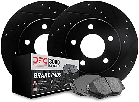 – Kit Completo de Freios: Inclui (2) Rotores DFC pretos com furos e ranhuras, (4) Pastilhas de cerâmica e kit de hardware.