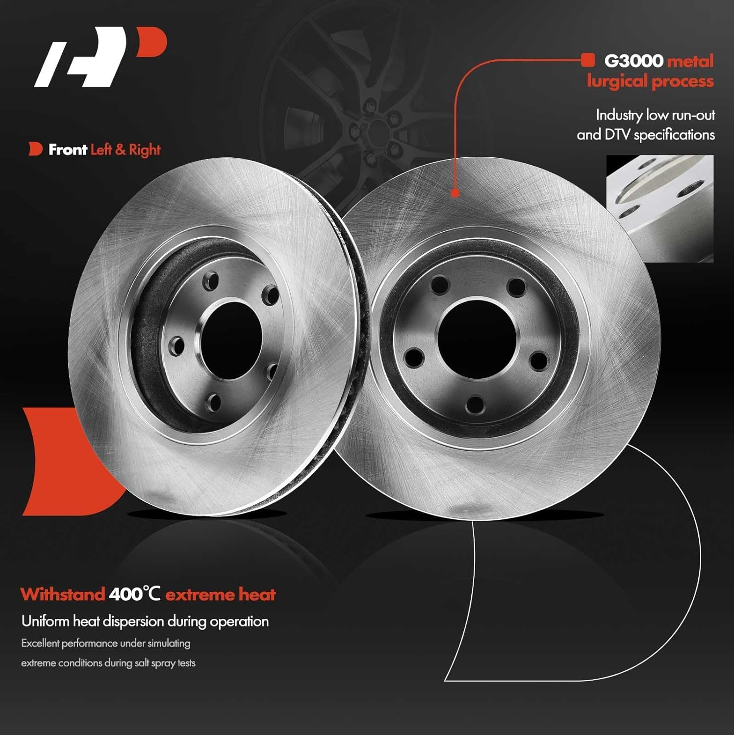 [Especificação]: Com uma quantidade de furos para parafusos de montagem de 5 e um diâmetro externo de 11,65 polegadas, os discos são fabricados com metalurgia G3000 e revestimento metálico que previnem eficazmente a ferrugem e a corrosão, prolongando a vida útil do produto. As especificações de baixa runout e DTV da indústria garantem uma operação suave do disco, baixa geração de poeira, redução de ruído e excelente poder de frenagem.