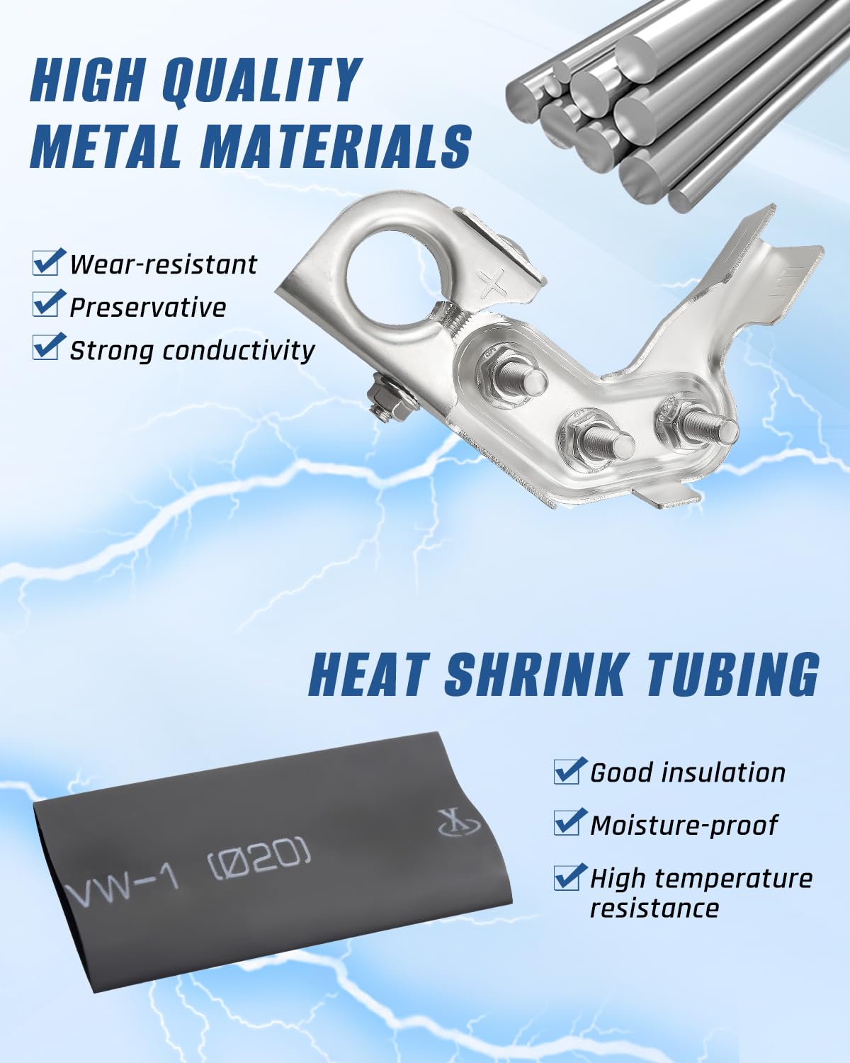 – Materiais de Alta Qualidade: Feito de metal altamente condutivo para garantir eficiência na transmissão de corrente.