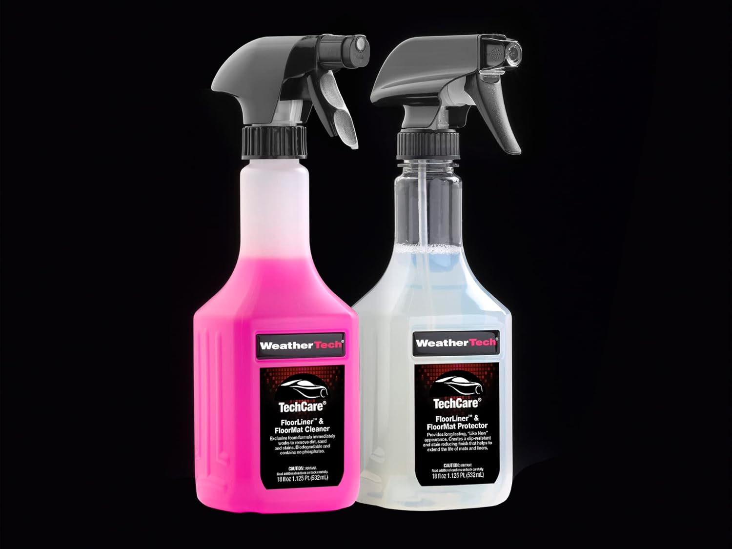 I know there are a lot of products out in the market place that could be better than this item. The product is okay but what shocked me was the size and what I paid for it. Very small container, 18 oz to be exact (each bottle) and the price in my opinion is price gouging! Very little product but pay top dollar! Now I am very happy with my Weather Tech mats but come on, I’ll find something else next time and something in a larger bottle without the hefty price!