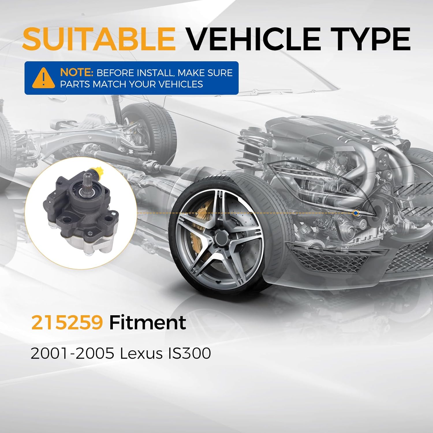 - 🚗 Compatibilidade Veicular – A Bomba de Direção Hidráulica 215259 é compatível com Lexus IS300 dos anos 2001, 2002, 2003, 2004 e 2005, com motor 3.0L.