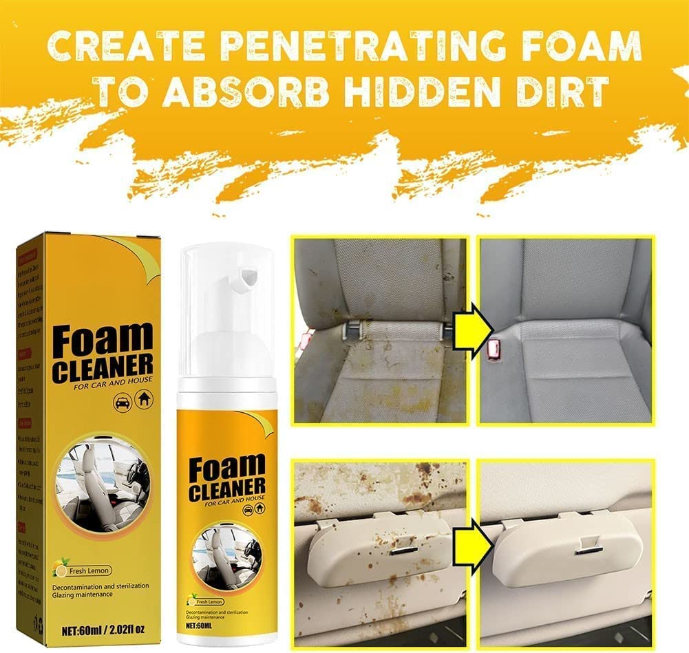 🔥 Como Novo — O limpador em espuma multiuso faz com que os interiores do seu carro e da sua casa pareçam novos! Ele remove facilmente até a sujeira mais incrustada e a graxa, sem deixar resíduos que possam danificar ou desbotar as superfícies.