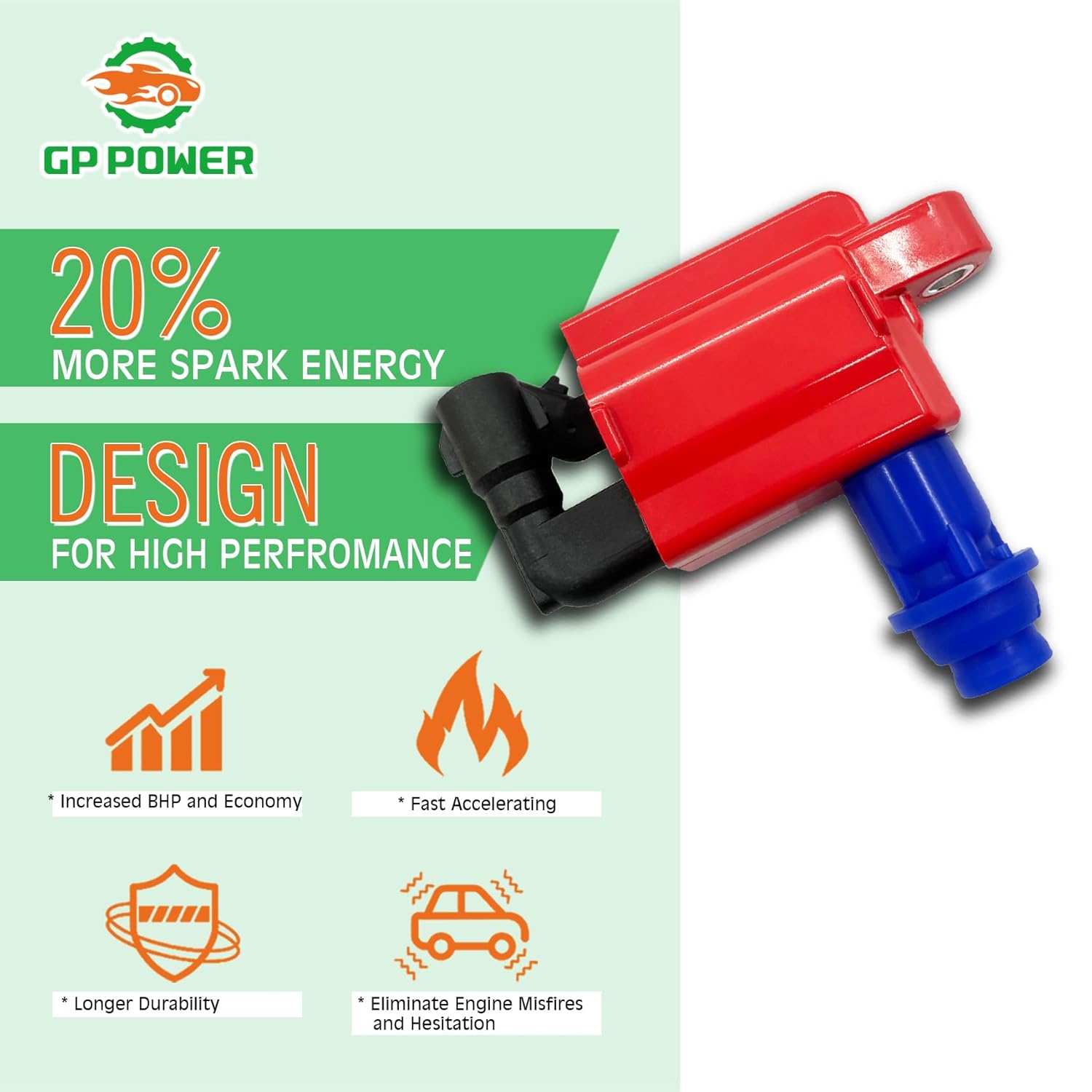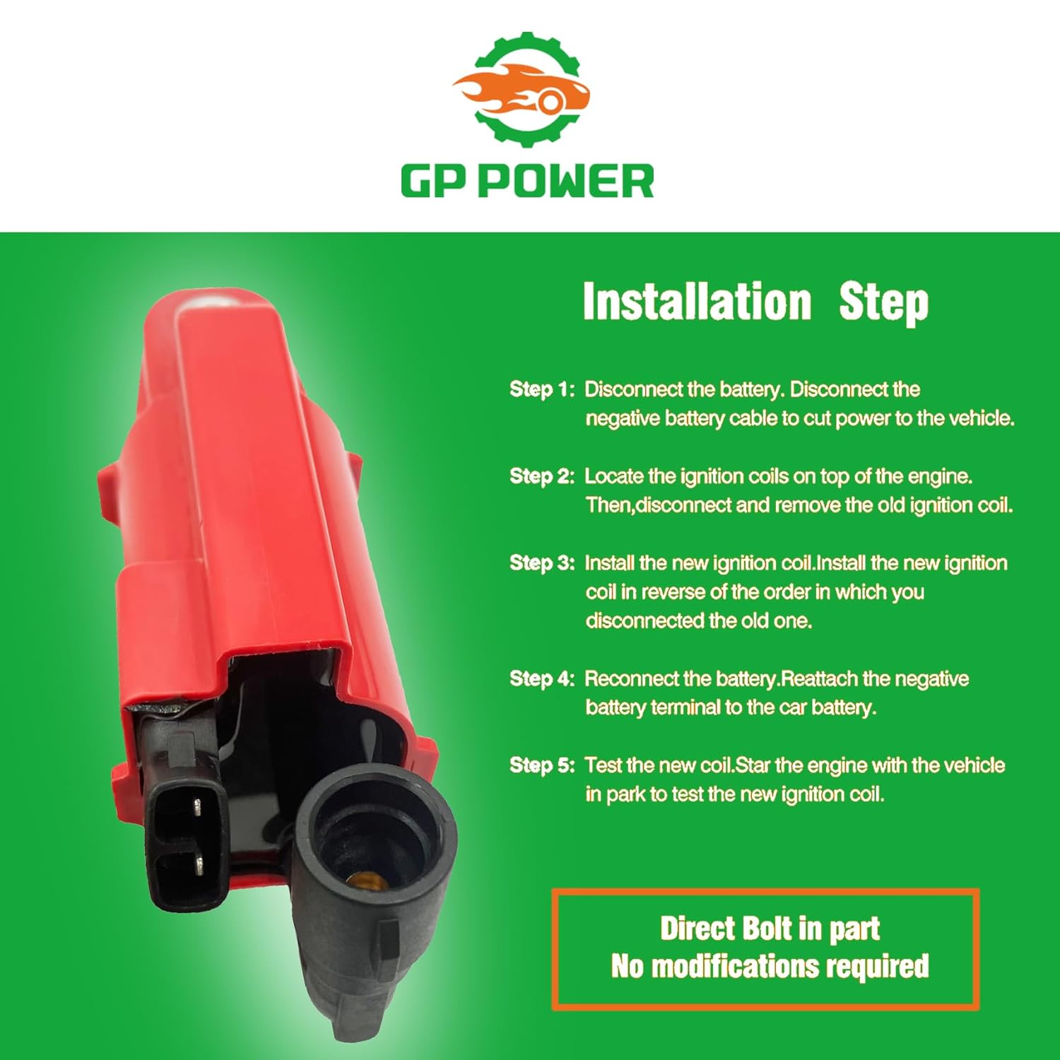 As bobinas GP POWER incorporam tecnologia de ponta e componentes de última geração, proporcionando uma qualidade inigualável. A instalação é rápida e descomplicada, podendo ser realizada em minutos, uma vez que as bobinas estão localizadas em ambos os lados do motor, dentro do compartimento do motor. Com a instalação deste produto, você perceberá imediatamente partidas de motor mais consistentes e suaves, além de uma resposta mais ágil ao acelerar.