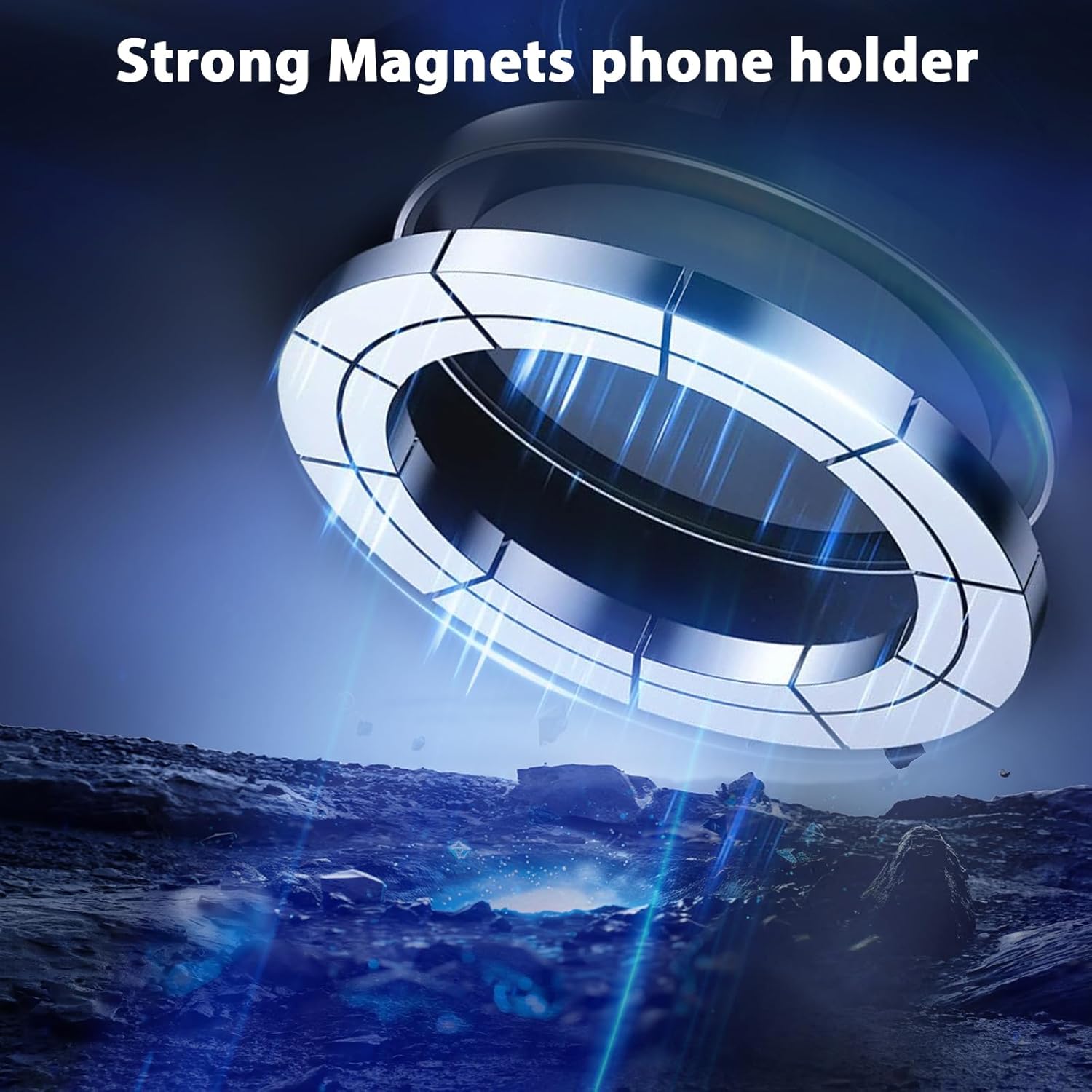 4. Colocação do Celular: Utilize o ímã para fixar seu celular no suporte. Se necessário, utilize o anel metálico para garantir a fixação em dispositivos não magnéticos.