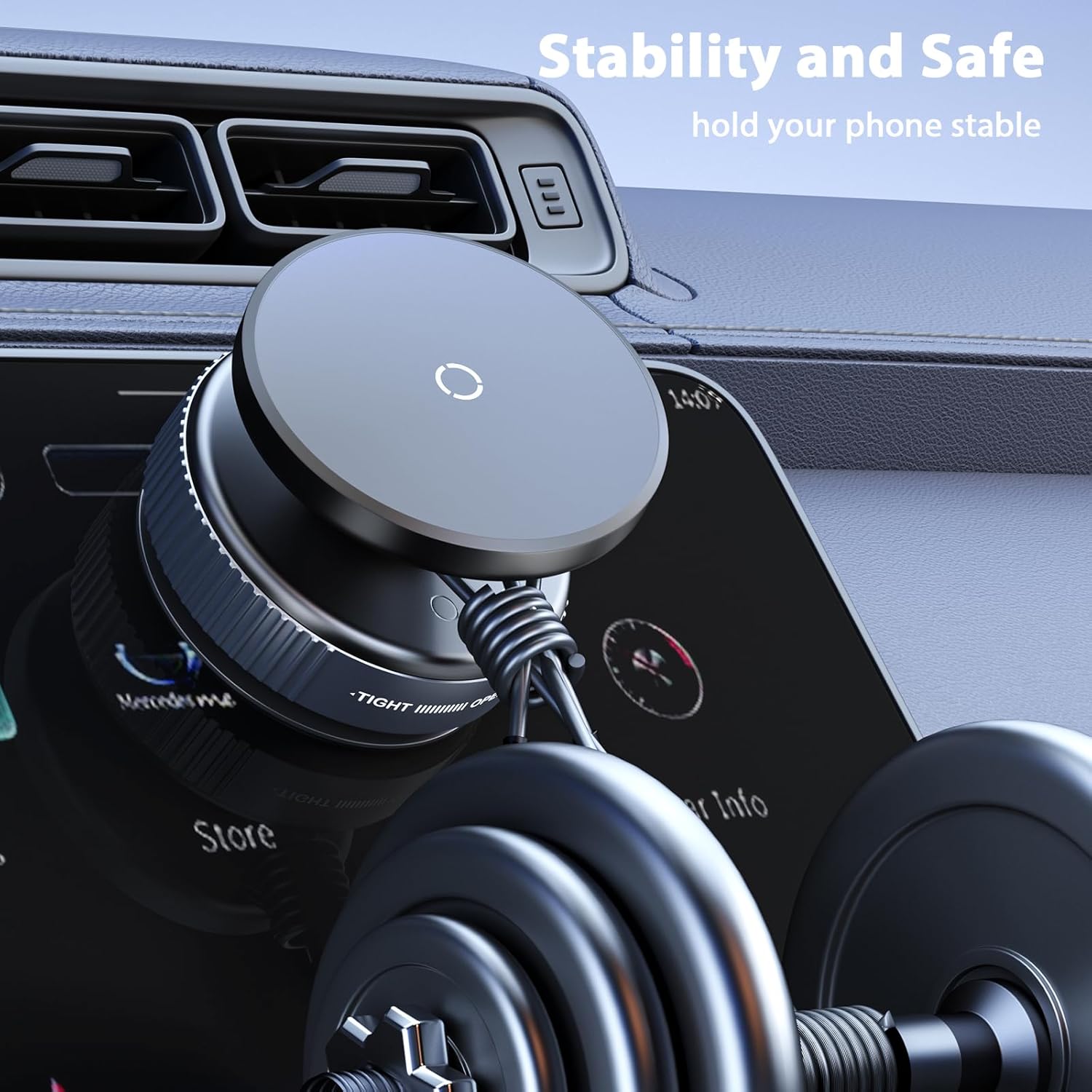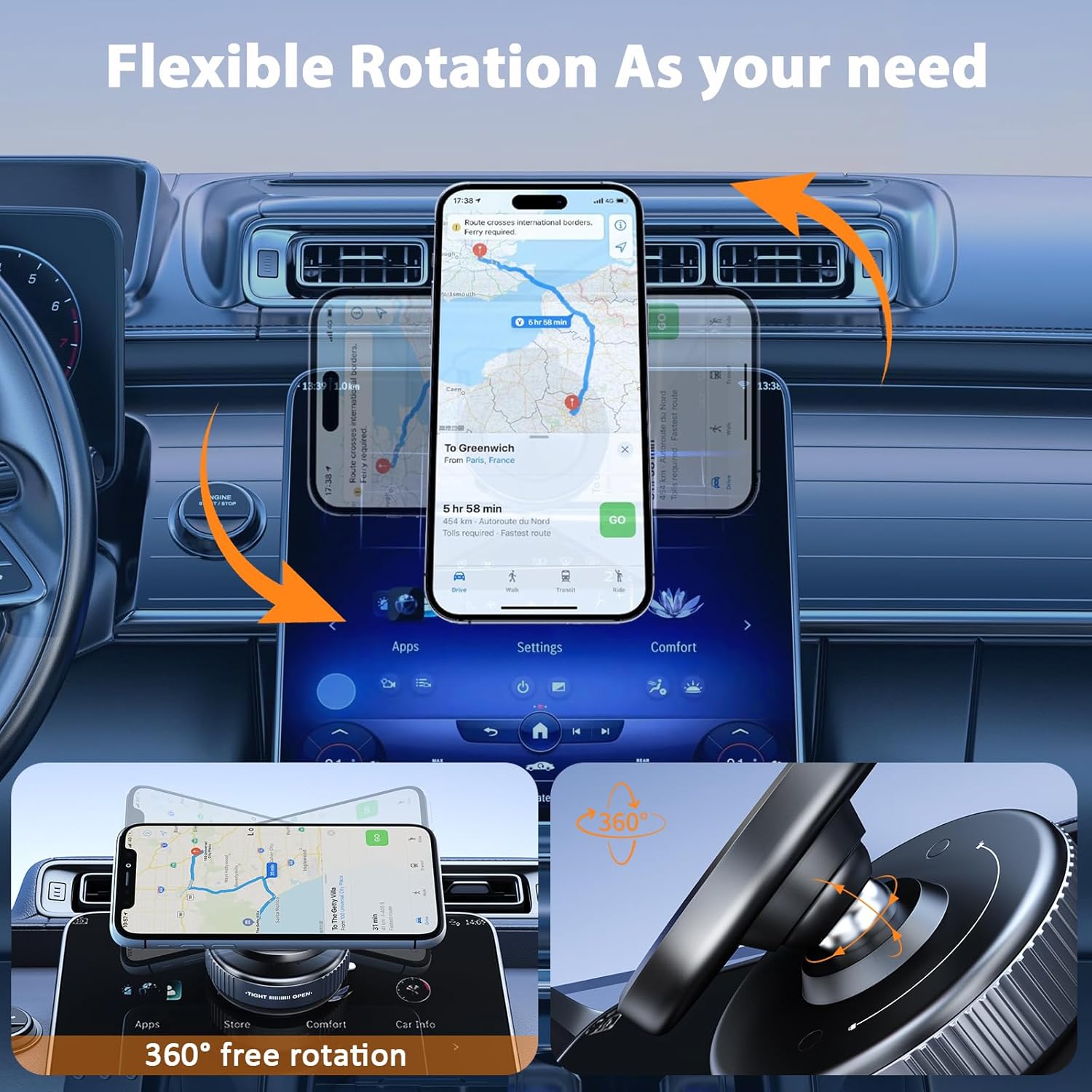 I’m really impressed with phone holder! The suction is strong and holds securely onto my car’s display, which is a huge plus. The magnetic feature works perfectly with my iPhone case, ensuring that my phone stays in place and doesn’t fall.
