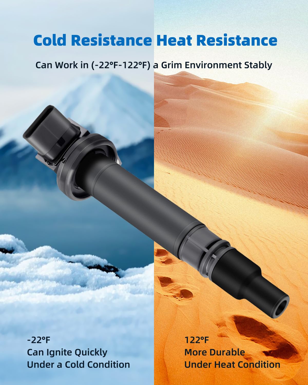 Com o tempo, as bobinas de ignição e velas de ignição de fábrica podem falhar, levando a problemas como baixa eficiência de combustível, falhas de ignição, hesitação e acendimento das luzes de verificação do motor (CEL) e do sistema de controle de estabilidade (VSC). A substituição conjunta das bobinas e velas é recomendada para garantir um desempenho superior na partida a frio e um funcionamento mais suave do motor.