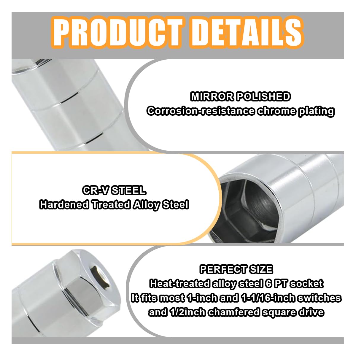 Com um design versátil, o soquete possui um diâmetro interno de 3/8” em uma extremidade, compatível com acionamentos de 3/8”, e um diâmetro interno de 1 1/8” na outra extremidade, adequado para chaves hexagonais de 1 1/8”. Isso o torna compatível com a maioria dos soquetes de interruptores de pressão de óleo, permitindo que você verifique o número OEM compatível com seu veículo antes da compra.