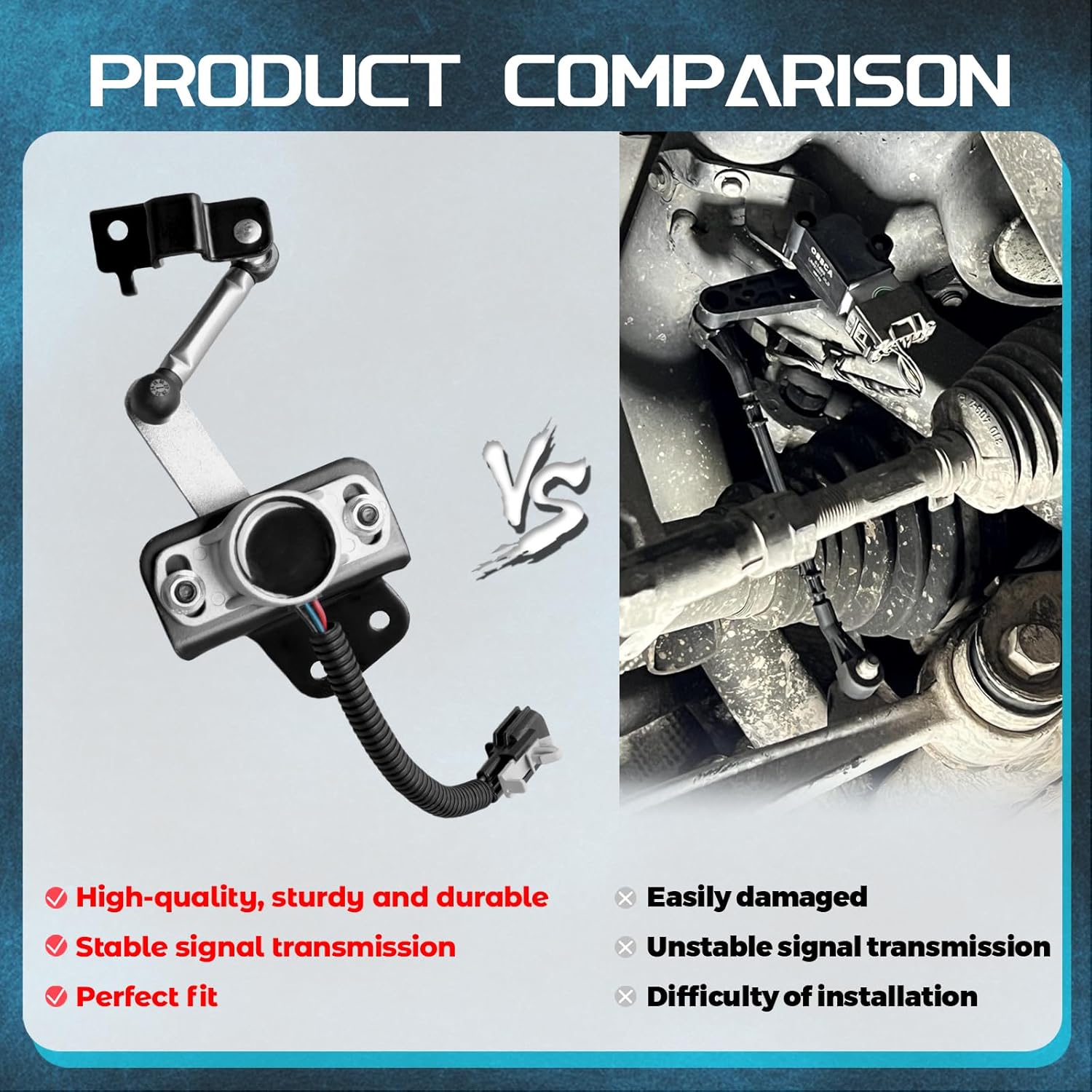 Worked great and got my 2017 Armada back up and running. Rather than using the adjustable link for suspension height, setting this unit uses slotted mounting holes to pivot the sensor itself.