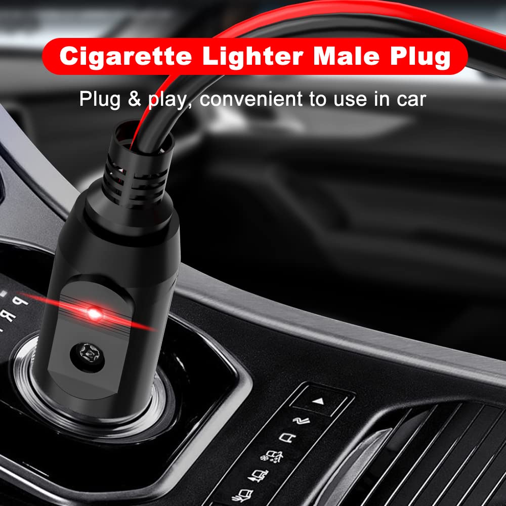 - Fácil de Instalar – O plugue de isqueiro padrão é compatível com a maioria dos soquetes de isqueiro, permitindo uma conexão rápida. O fio vermelho indica a polaridade positiva e o fio preto a negativa, facilitando a instalação.