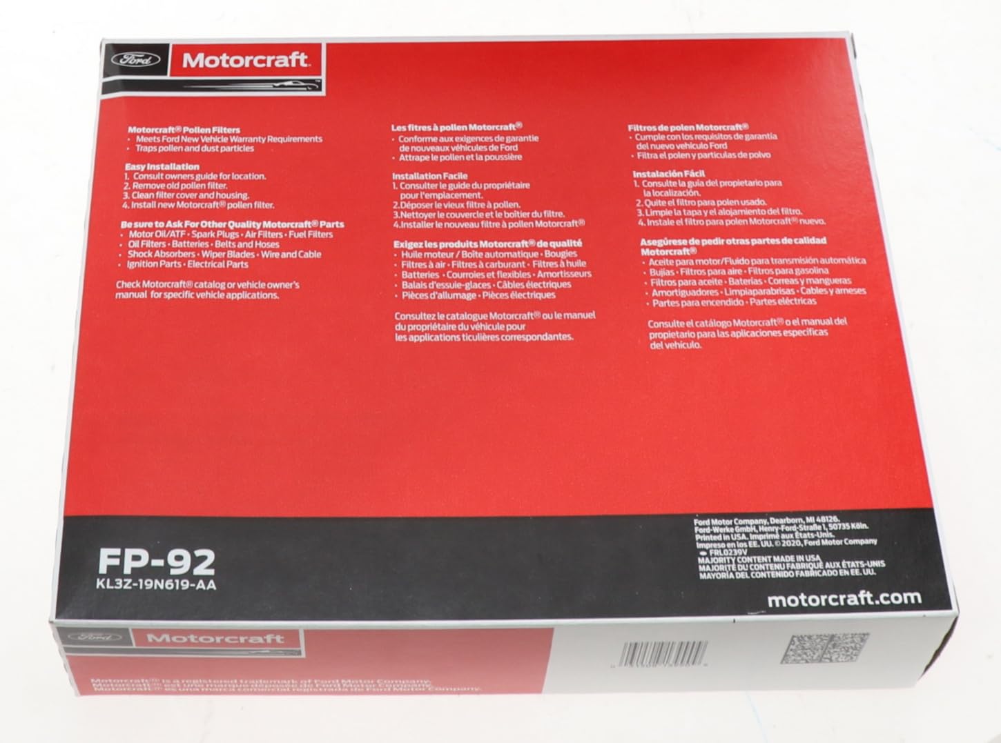 O Filtro de Ar do Cabine Motorcraft – FP-92 FP92 é um componente essencial para garantir a qualidade do ar que circula dentro do seu veículo. Com a referência de peça MOTFP92, este filtro é projetado especificamente para se encaixar em uma variedade de modelos de veículos, proporcionando uma filtragem eficaz contra poluentes e alérgenos, como pólen, poeira e outras partículas indesejadas.