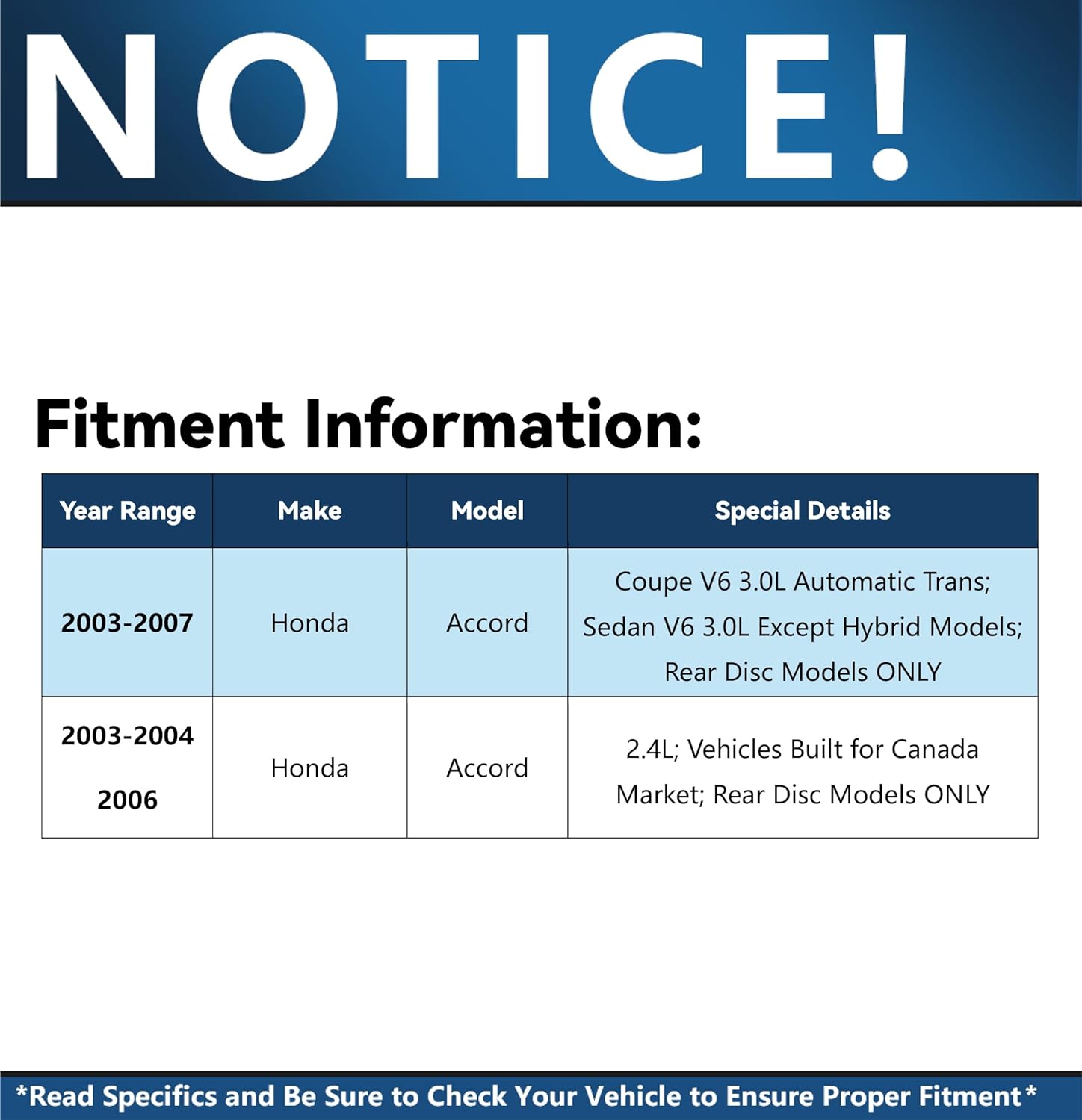 – Compatibilidade: Projetado para Honda Accord 2003-2007 (Coupé V6 3.0L Automático; Sedan V6 3.0L, exceto modelos híbridos; apenas modelos com disco traseiro).