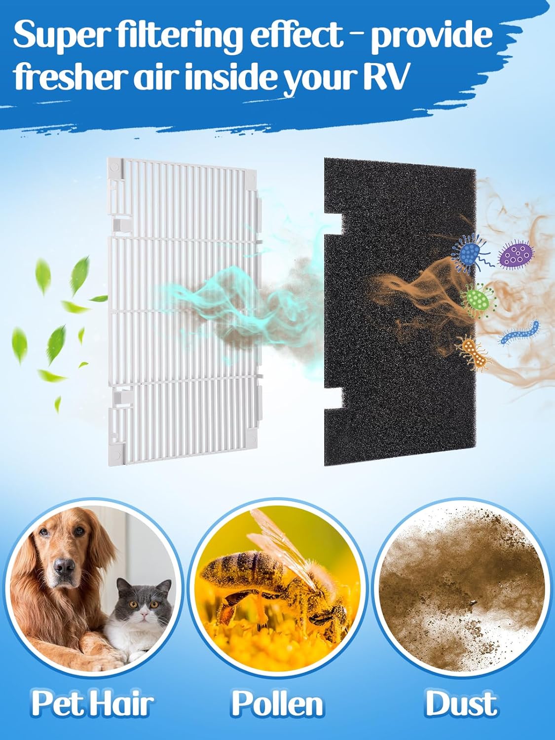 Transforme a experiência de climatização do seu RV com o nosso conjunto de 2 peças de grelha de ar condicionado A/C para RV, que inclui 4 filtros de ar. Este produto é a solução ideal para quem busca eficiência e proteção para o sistema de ar condicionado Dometic 3104928.019. Com um design inovador, as grelhas de ar substitutas não apenas se encaixam perfeitamente, mas também desempenham um papel crucial na captura de poeira, pelos de animais e outros detritos que podem comprometer o funcionamento do seu ar condicionado. Ao evitar que essas partículas entrem no sistema, você prolonga a vida útil do seu equipamento, garantindo um ambiente interno mais saudável e confortável.