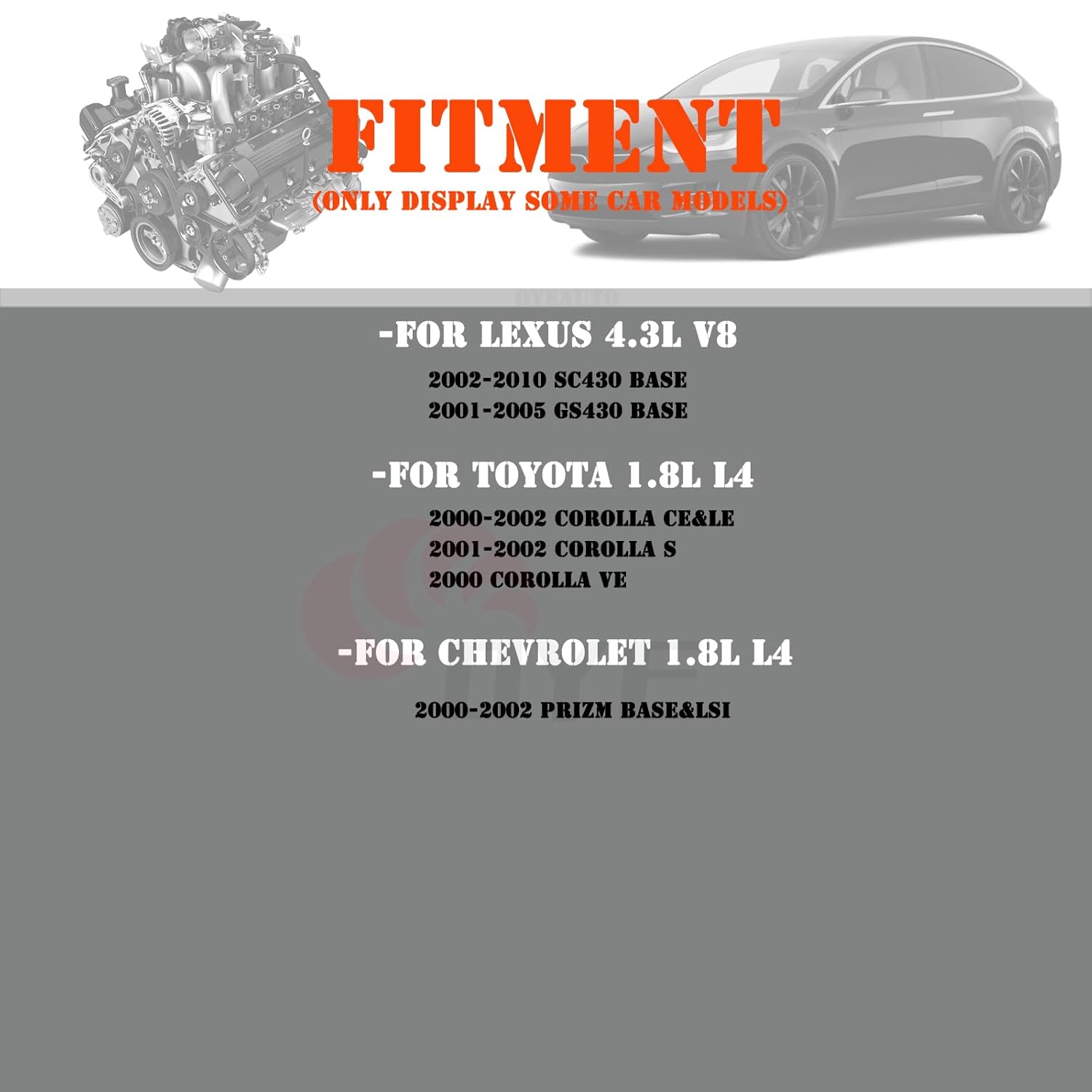 – Modelos Compatíveis: Lexus SC430, GS430 (Base 2001-2009, 4.3L V8), Toyota Corolla (CE & LE 2000-2002, S 2001-2002, VE 2000, 1.8L L4), Chevrolet Prizm (Base & LSi 2000-2002, 1.8L L4).