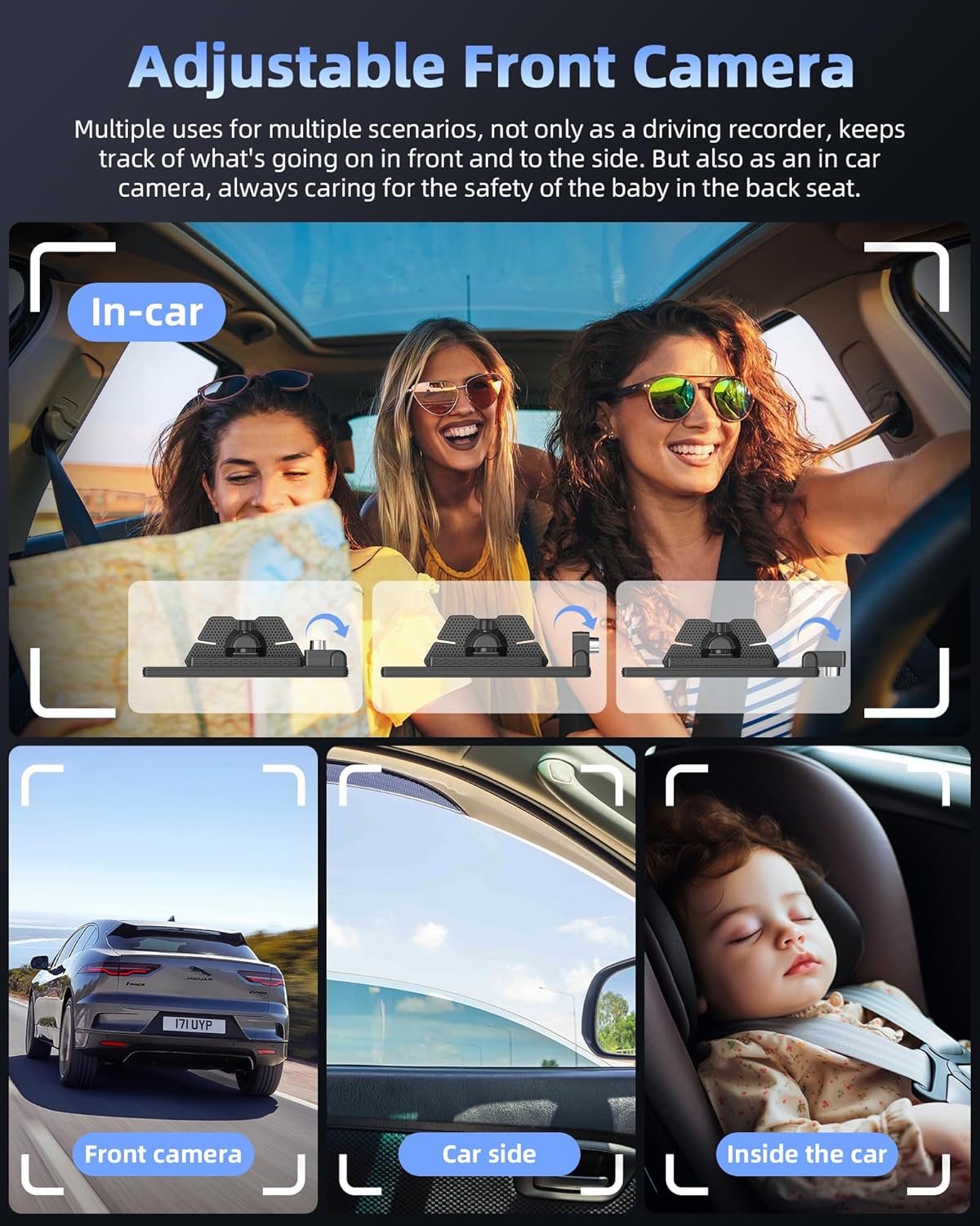 Com uma câmera frontal de 2.5K e uma câmera traseira de 1080P à prova d’água, o Lens Flip oferece gravação simultânea em alta definição, capturando detalhes importantes como placas de veículos à distância. As lentes de ângulo amplo de 170° e 140° reduzem as áreas cegas, permitindo uma visão mais abrangente da estrada. Equipado com Wi-Fi 5G, você pode visualizar, reproduzir e baixar arquivos em tempo real diretamente no seu smartphone.