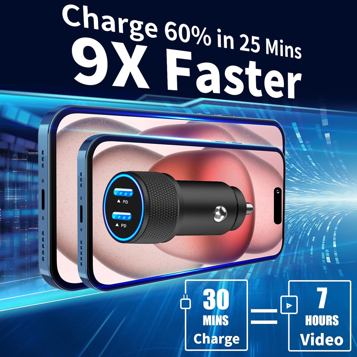– Equipado com Carregador Rápido Inteligente de 72W USB-C: O carregador BARMASO utiliza tecnologia de carregamento inteligente que maximiza a eficiência de carga em mais de 99%. Com a capacidade de carregar seu iPhone 16 a 60% em apenas 20 minutos, a velocidade de carregamento é aumentada em até 9 vezes em comparação com carregadores convencionais.