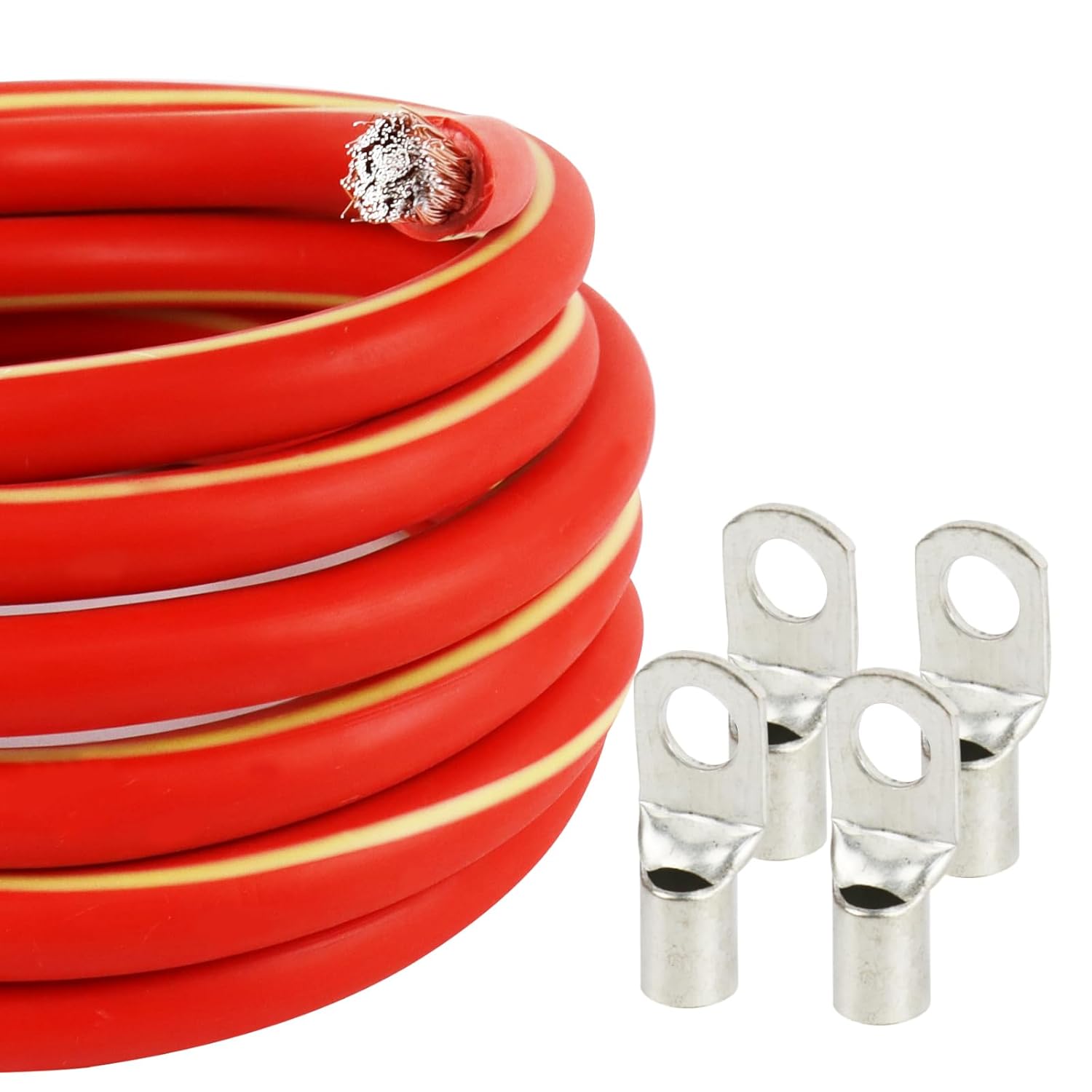 Cabo de Bateria para Caminhão 1/0 Gauge (Vermelho, 5 Pés) – Fio de Inversor Automotivo com 2 Peças M10