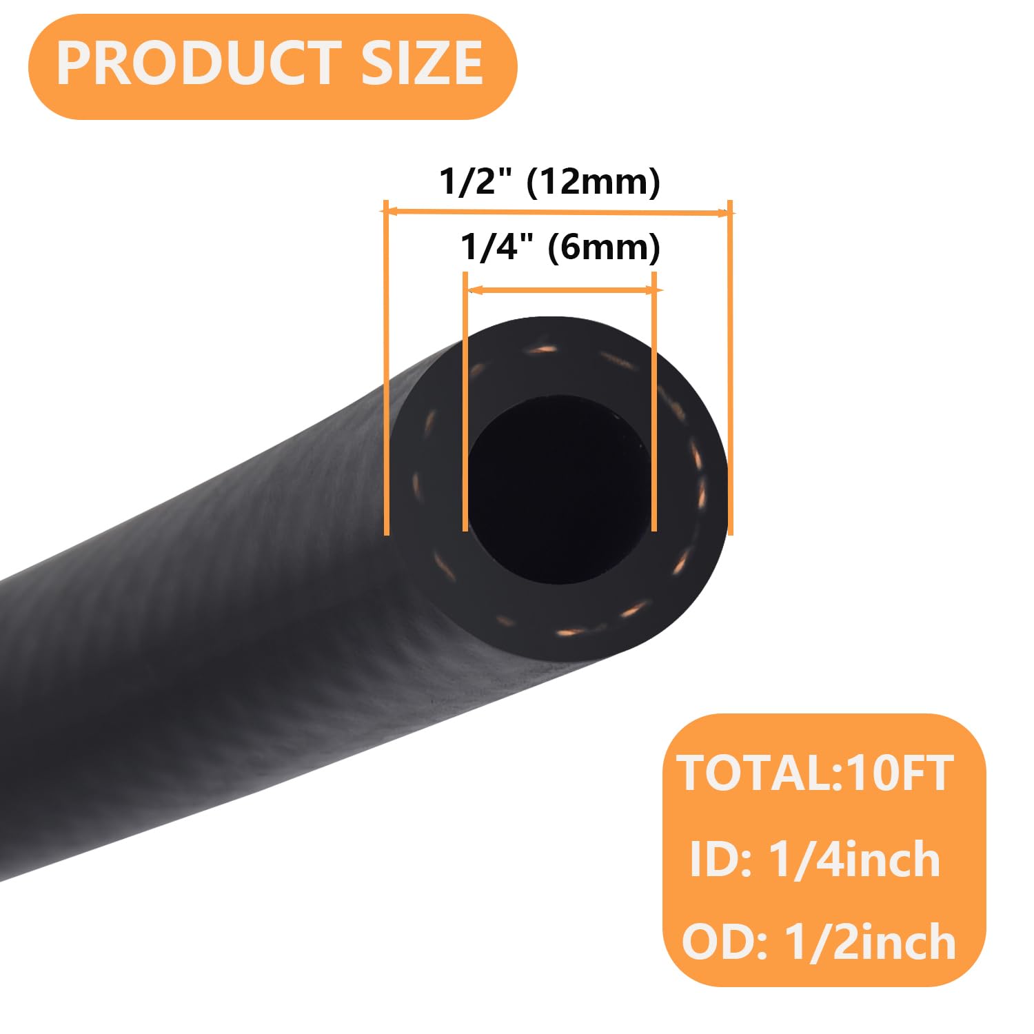 Descrição do Produto: Mangueira de Combustível 1/4 Polegada (10mm) ID, 10FT Push Lock NBR Rubber Hose