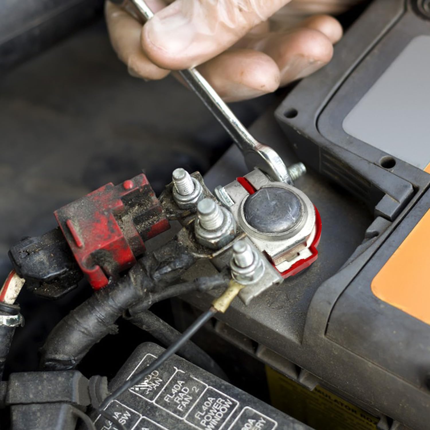 3. Conecte os Novos Terminais: Insira os cabos da bateria nos orifícios correspondentes dos conectores (vermelho para positivo e preto para negativo) e aperte os parafusos até que estejam firmes.