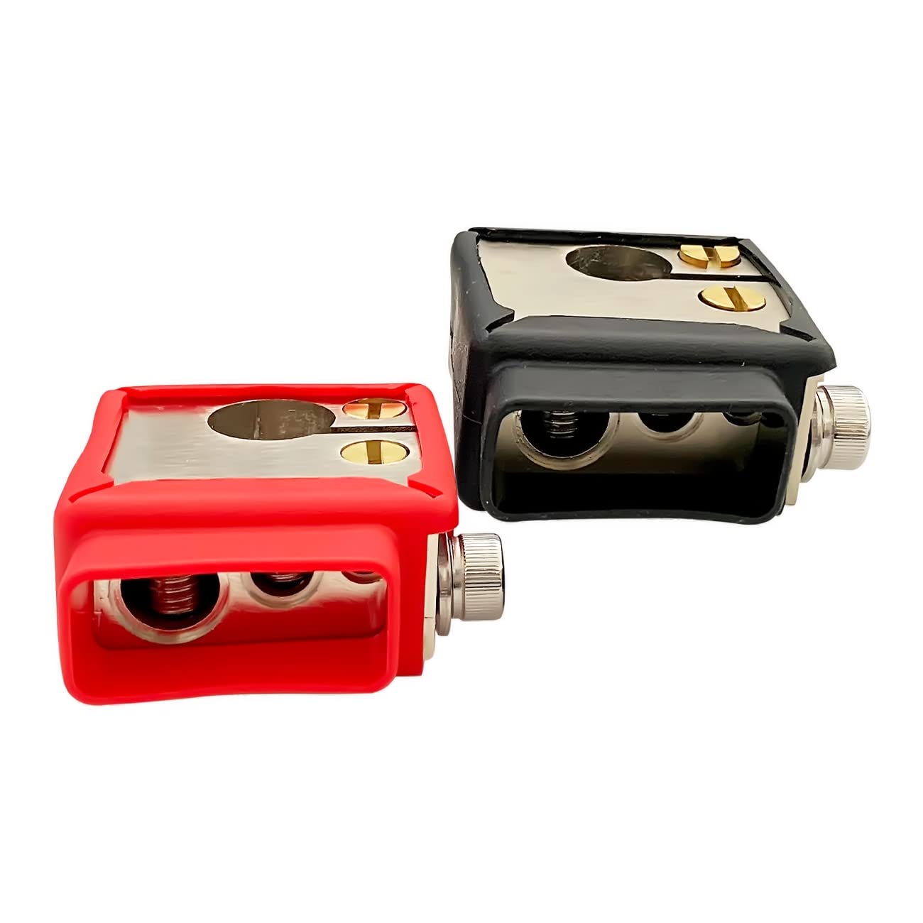 O 1 Par de Terminais Positivos é a solução ideal para quem busca qualidade e eficiência na conexão de baterias. Com a capacidade de aceitar cabos de 0, 4 e 8 gauge através de portas de parafuso, esses terminais são projetados para se adequar aos postes de bateria do tipo SAE A, garantindo uma instalação segura e confiável. O terminal positivo é especificamente desenhado para um poste cônico de 17,5 mm, enquanto o terminal negativo se adapta a um poste cônico de 16 mm, com um diâmetro de furo de montagem de 19 mm (positivo) e 17,8 mm (negativo).