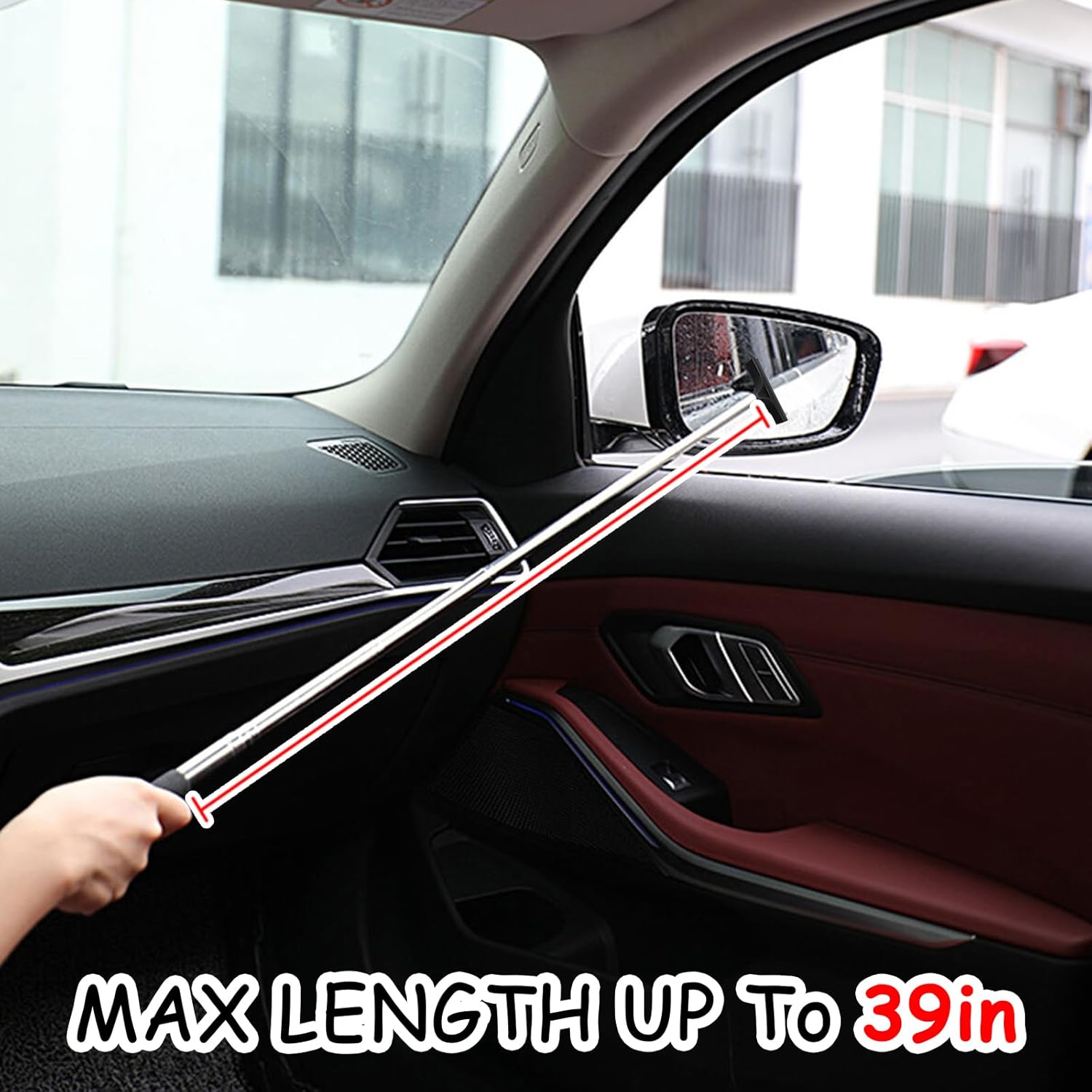 O design retrátil deste limpador de espelho de carro permite que ele seja estendido em até cinco comprimentos diferentes, alcançando até 98 cm. Isso significa que você pode rapidamente limpar seu retrovisor sem precisar sair do carro; basta baixar a janela do motorista e usar o cabo estendido para remover sujeira, poeira e água de forma suave e prática. Com apenas 21,8 cm de comprimento quando recolhido, o limpador é compacto e portátil, podendo ser armazenado em qualquer canto do carro sem ocupar muito espaço, mantendo seu veículo mais limpo e organizado.