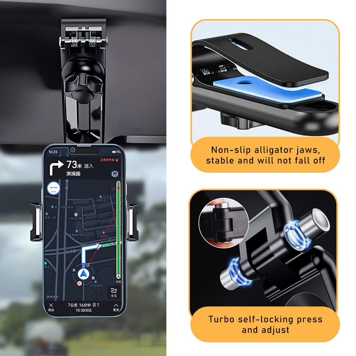 Este suporte se fixa firmemente ao visor solar ou superfícies curvas, evitando quedas durante curvas, solavancos, frenagens ou em alta velocidade. Com um simples movimento de uma mão, você pode ajustar a direção da tela, permitindo que mantenha os olhos na estrada e a atenção na direção, promovendo uma condução segura e estável.