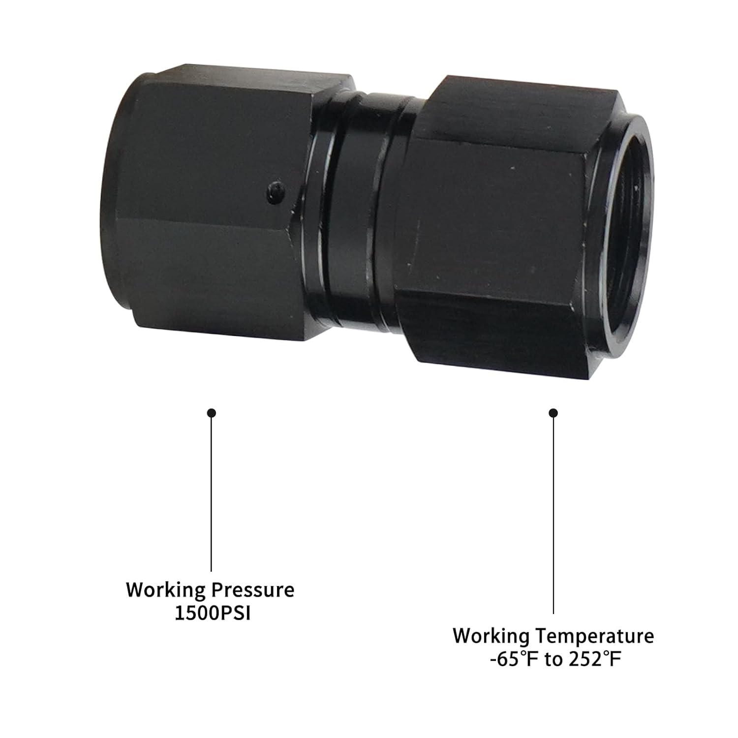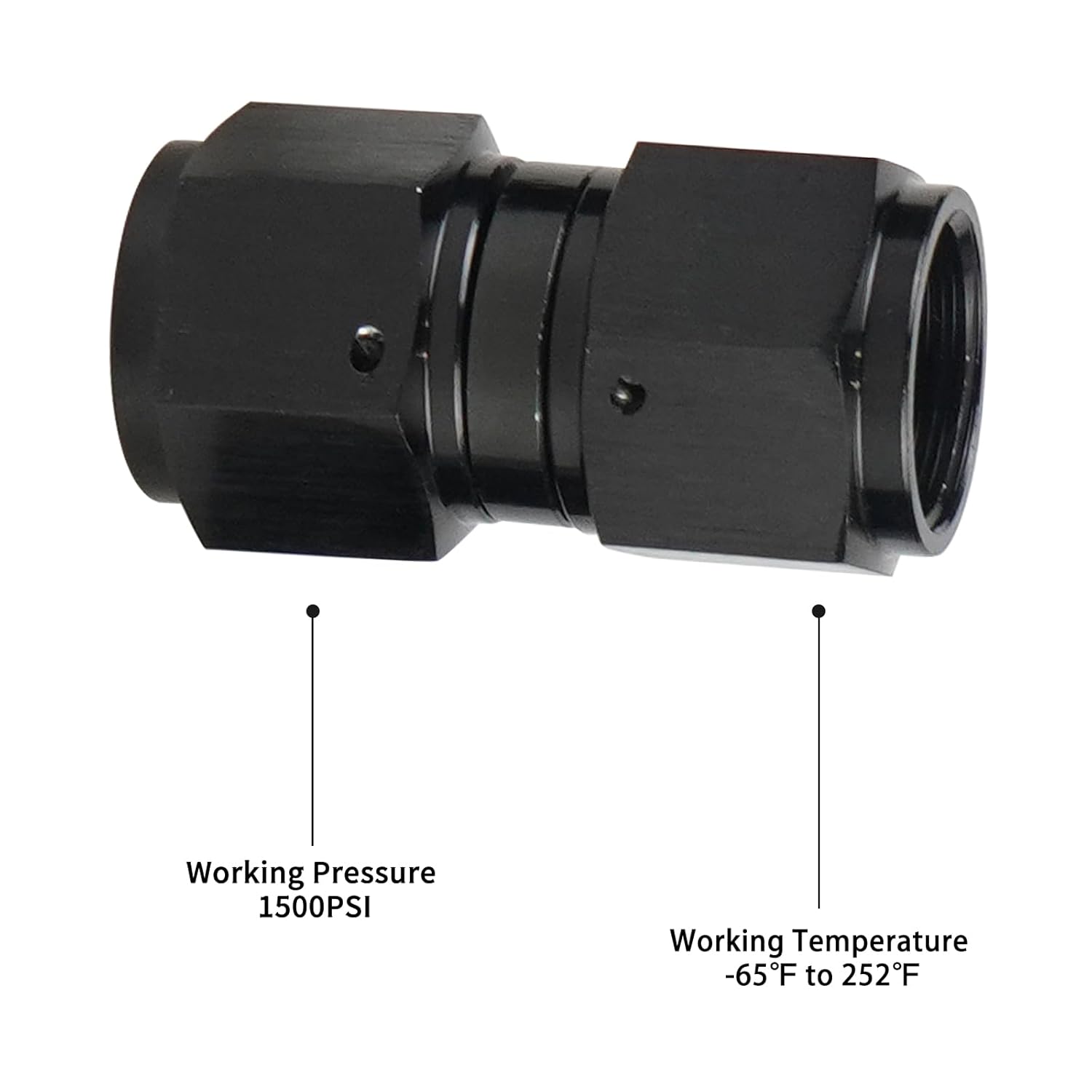 5 avaliações para Adaptador de União Fêmea 10AN para 10AN – Conector Giratório em Alumínio Anodizado Preto para Sistema de Combustível – 2 Peças