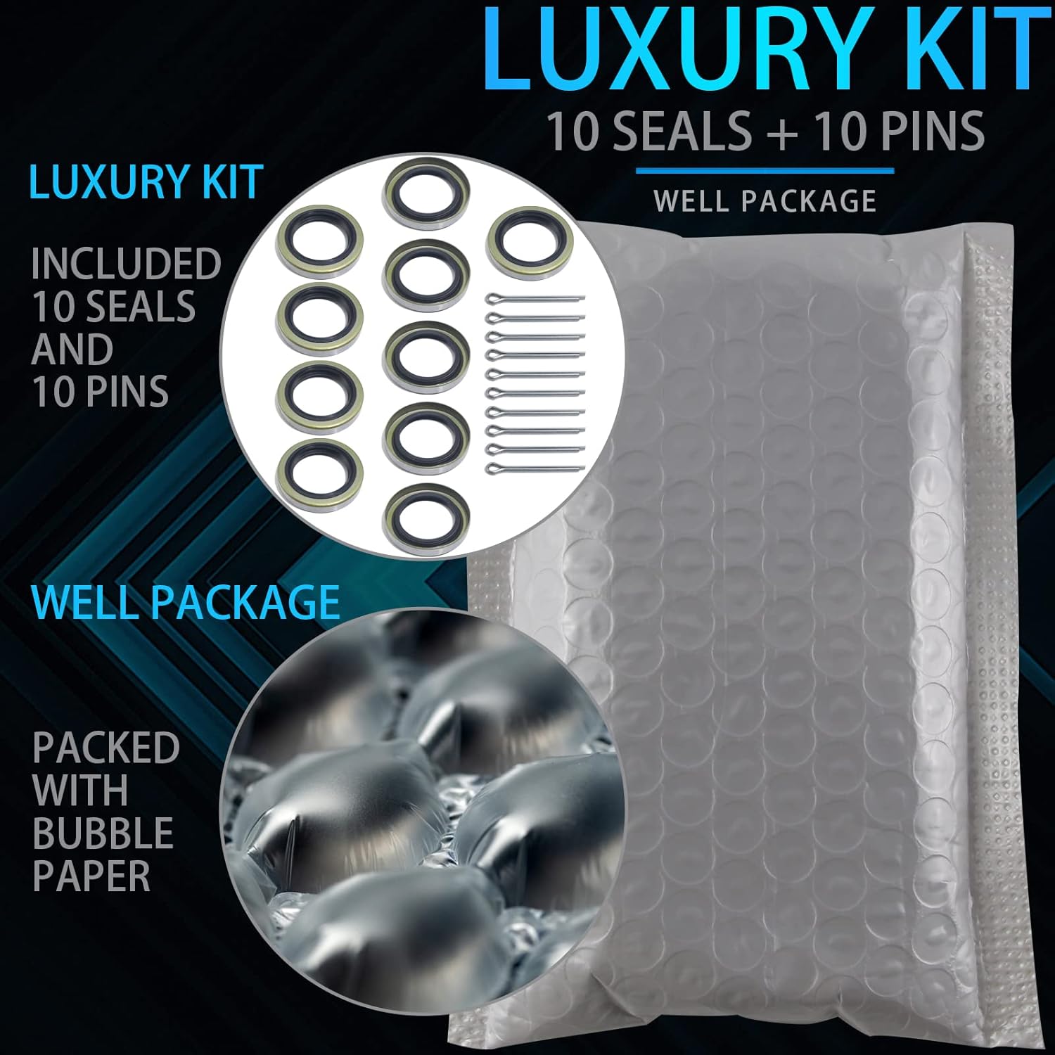 Cada pacote contém 10 selos e 10 pinos, proporcionando uma solução econômica para múltiplos reparos. Com a inclusão de 10 pinos cotter de 2.25″, você terá tudo o que precisa para uma instalação rápida e eficiente, evitando o custo elevado de compras locais.