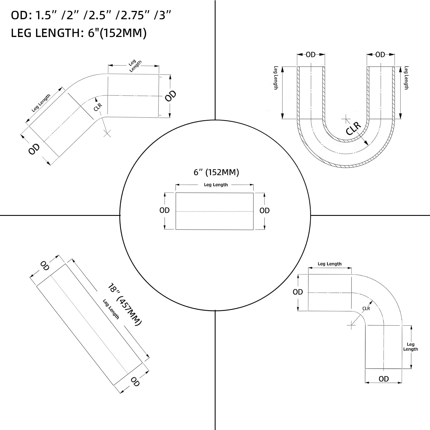 – Conteúdo do Pacote: 10 peças, incluindo 2 tubos retos de 6″, 2 tubos retos de 18″, 2 tubos de 45 graus, 2 tubos de 90 graus e 2 tubos de curva de 180 graus.