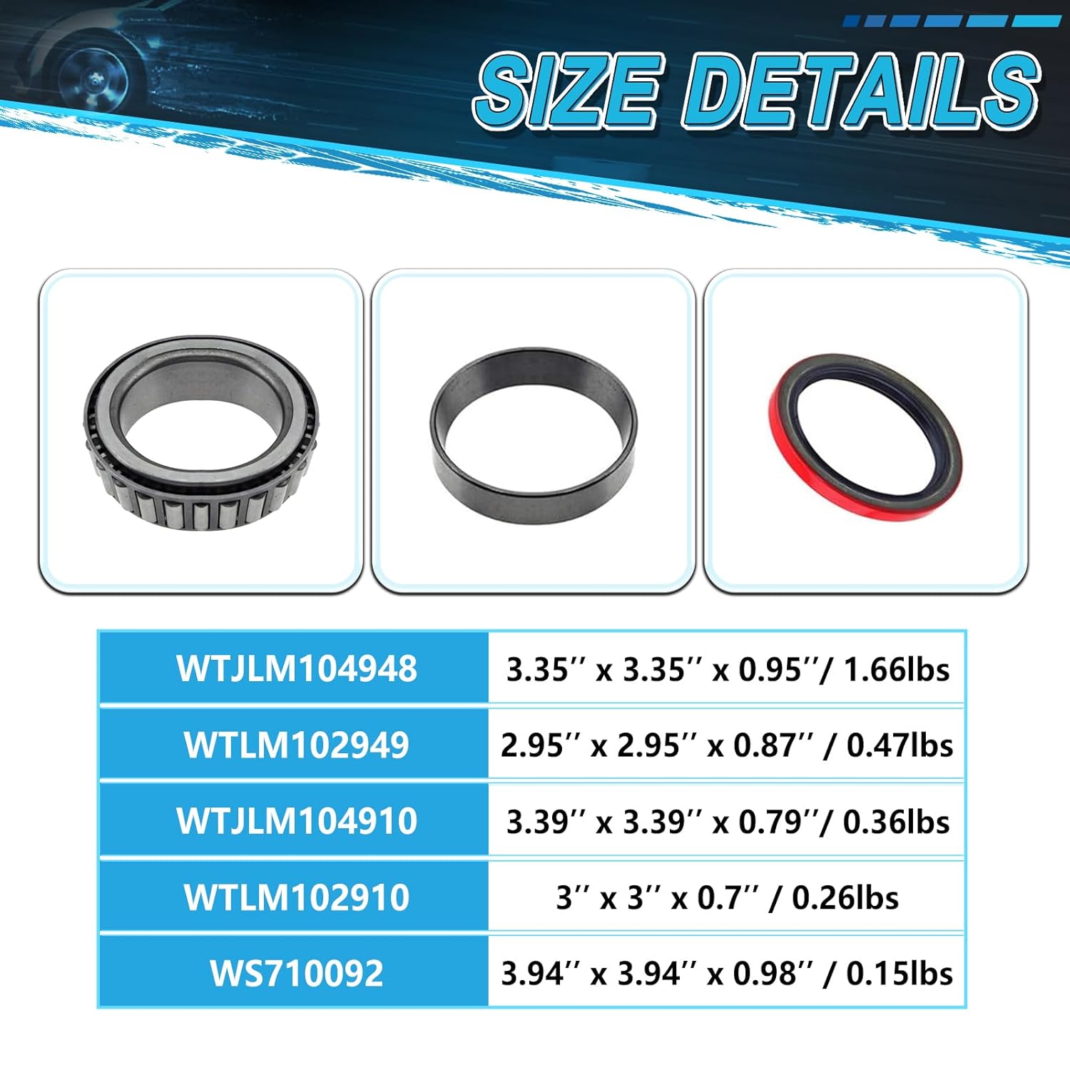 - ✅【Número da Peça】Selos de Roda WS710092*2; Conjunto de Raça de Rolamento WTJLM104948*2; WTLM102949*2; WTJLM104910*2; WTLM102910*2.