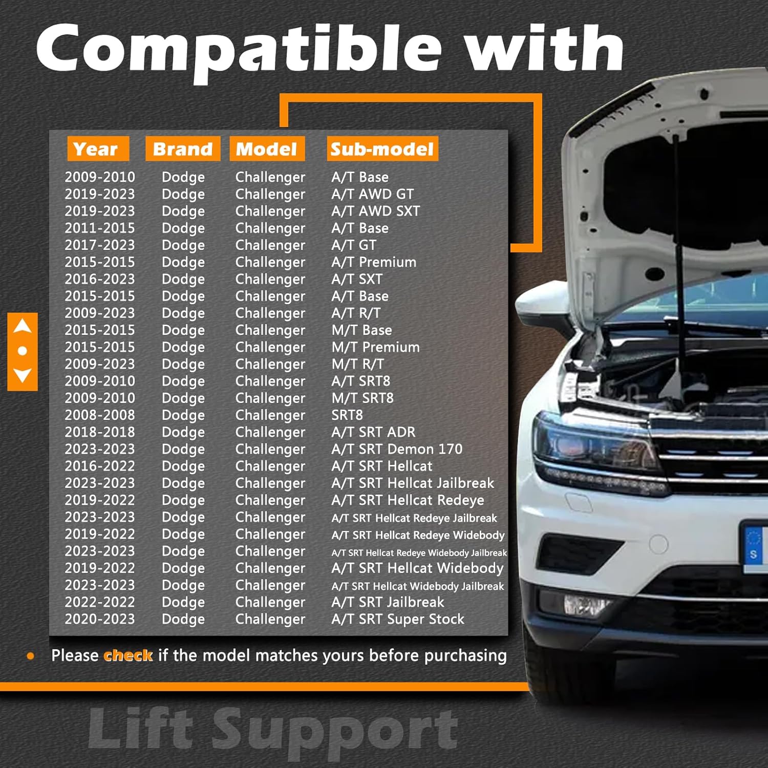 Descrição do Produto: Suporte de Capô Lift Gas Spring para Dodge Challenger 2008-2021