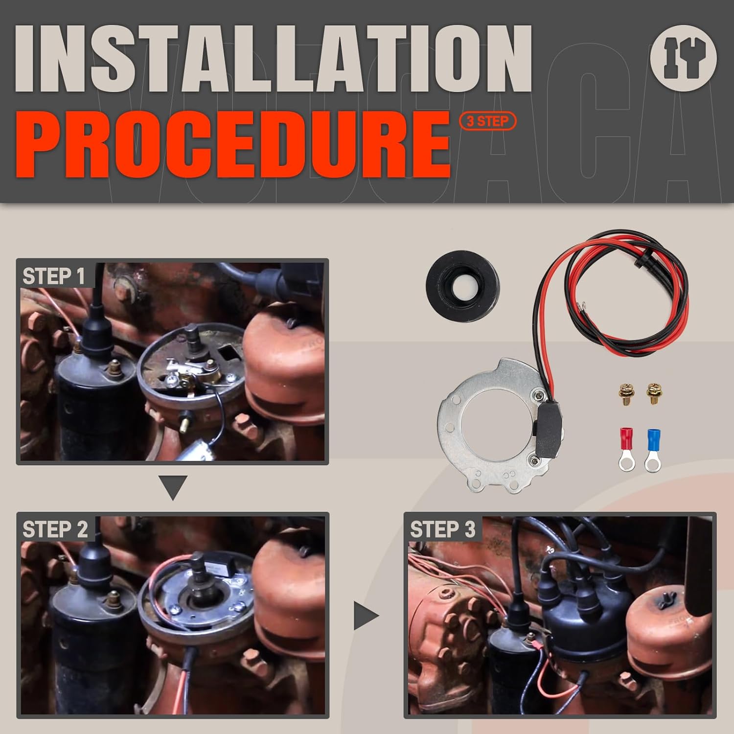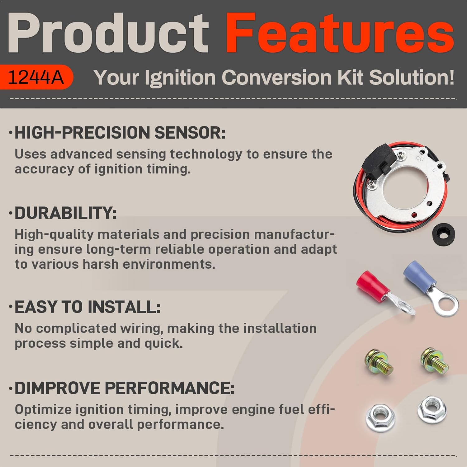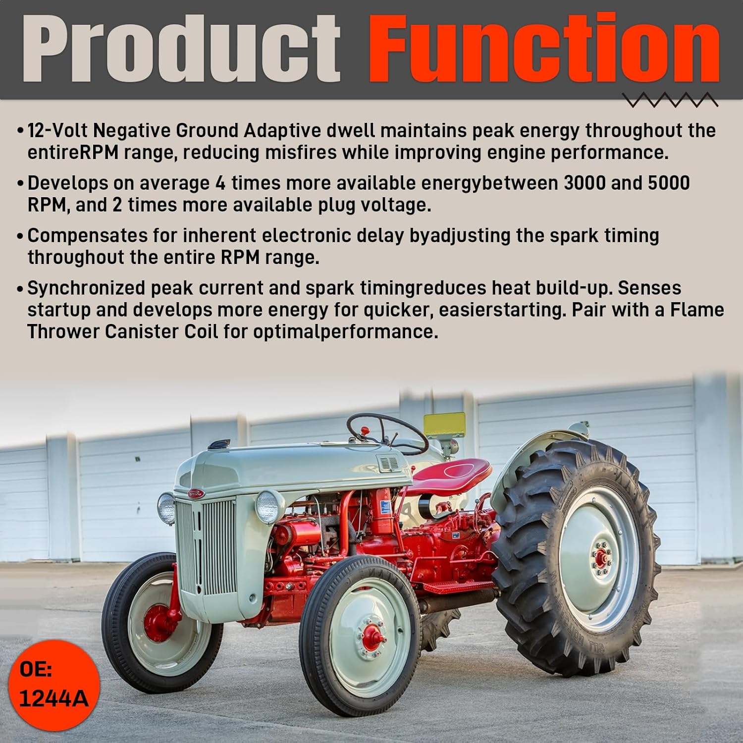 O Kit de Conversão de Ignição Eletrônica 1244A é a solução ideal para proprietários de tratores Ford 2N, 8N e 9N da série 500 a 800 com distribuidor lateral. Este kit foi projetado para transformar a ignição tradicional em um sistema eletrônico eficiente, proporcionando uma experiência de operação superior. Com uma voltagem de operação de 12 volts e um sistema de avanço a vácuo, a instalação é simples e rápida, garantindo um tempo de ignição estável sem a necessidade de ajustes constantes.