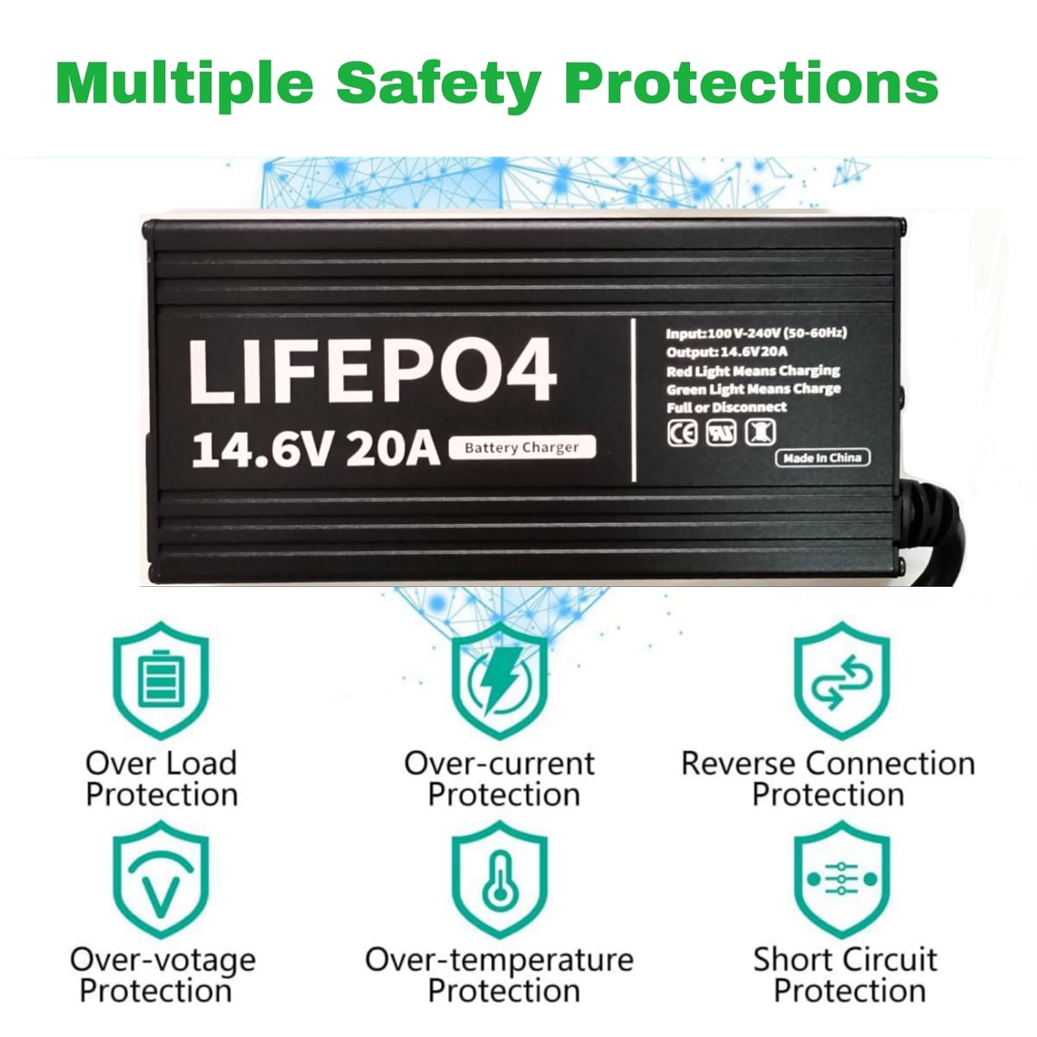 – Carregamento Eficiente: Este carregador de 14.6V e 20A é otimizado para o carregamento rápido de baterias LiFePO4, permitindo que você passe menos tempo esperando e mais tempo utilizando seus dispositivos.