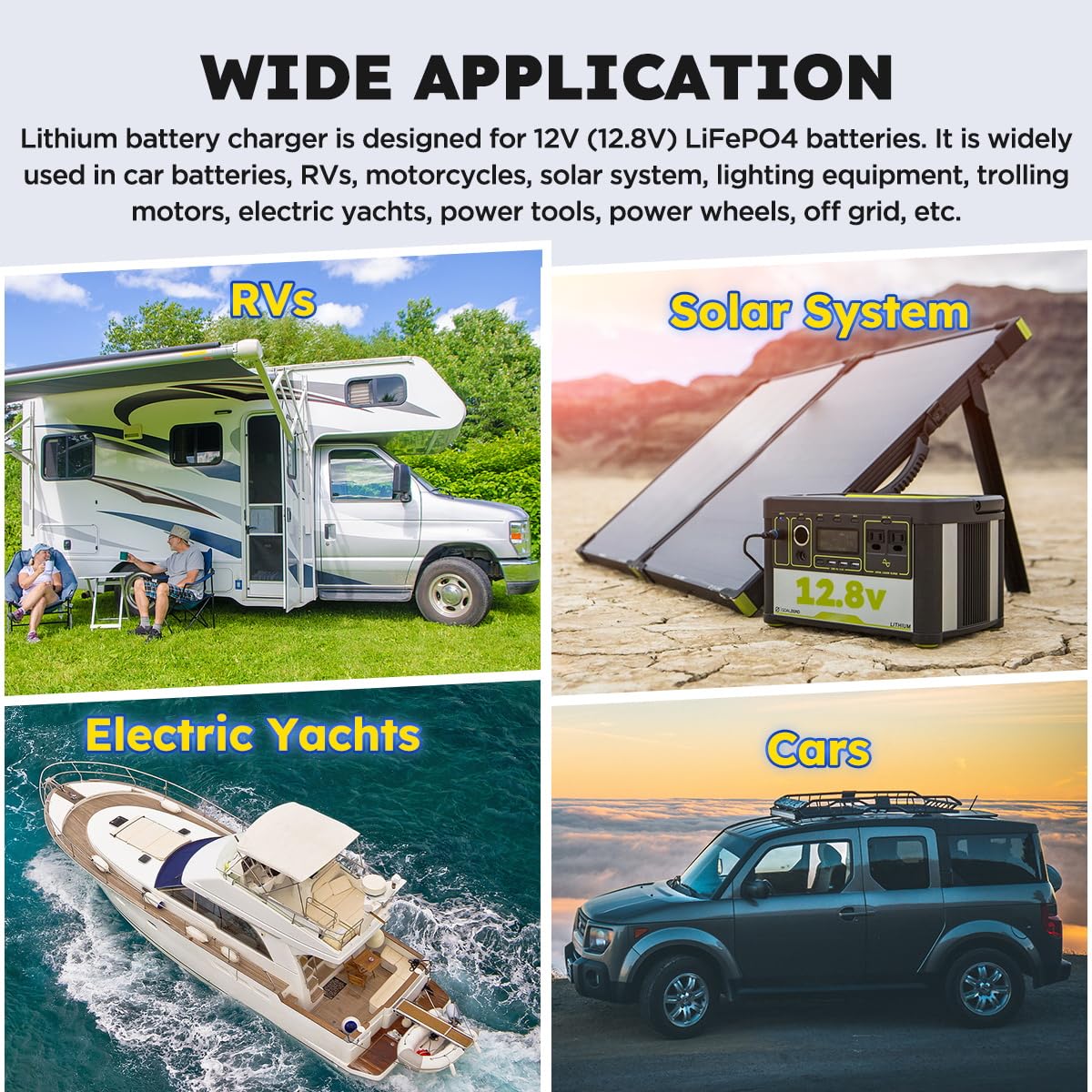 This battery charger is specifically designed for LiFePo4 lithium batteries. LiFePo4 offers advantages over Lithium-Ion and are increasing being used more and coming down in price.