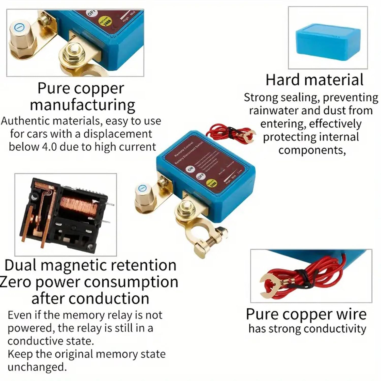 O Interruptor de Desconexão de Bateria 12V 240A é a solução ideal para quem busca segurança e eficiência no gerenciamento da energia de veículos como caminhões, RVs, barcos, ATVs e outros. Este dispositivo inovador não apenas protege sua bateria contra descargas indesejadas, mas também oferece um controle remoto prático e uma opção de controle manual, garantindo que você tenha sempre o poder de desligar a energia quando necessário.
