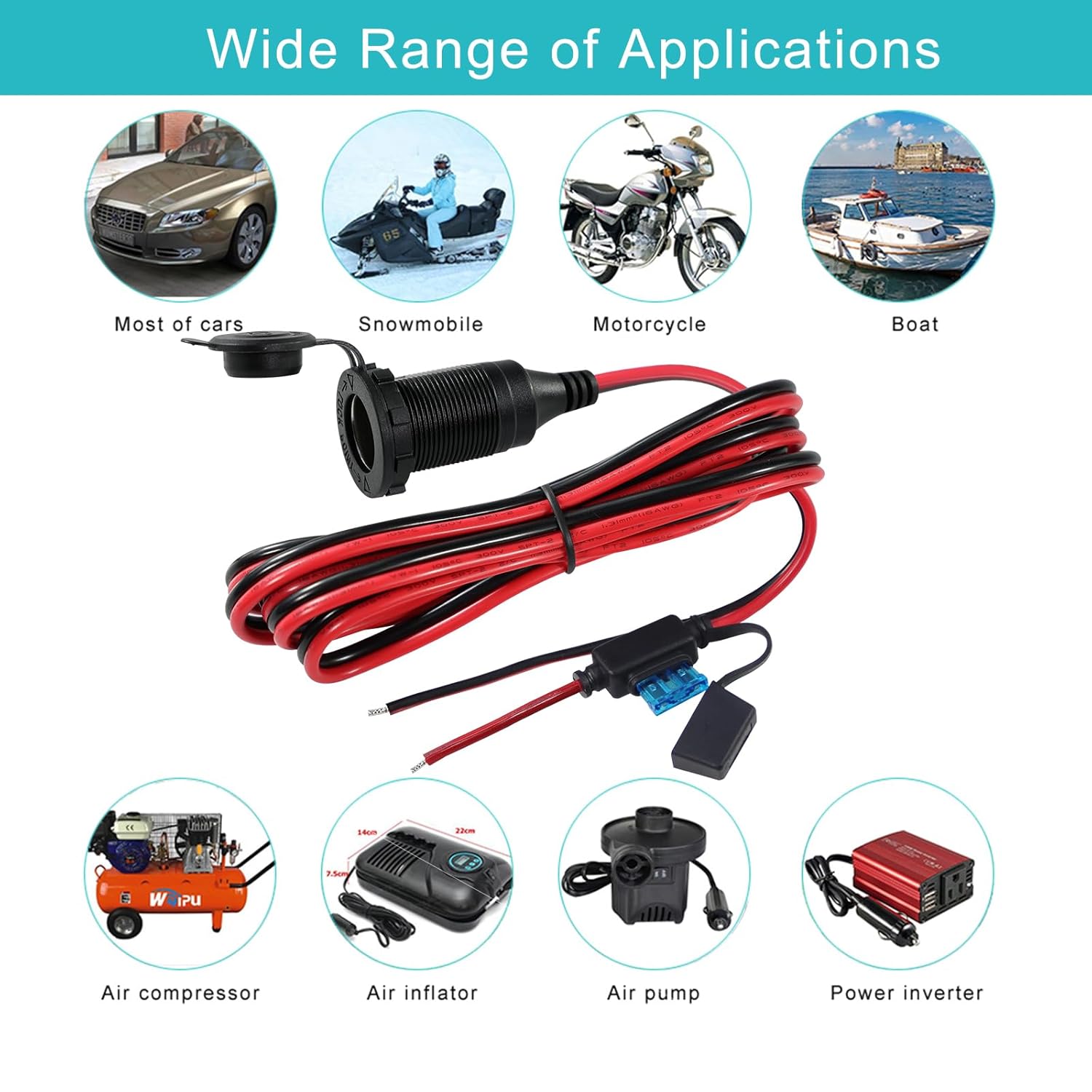 A extensão do cabo de 6 pés com fios expostos permite uma colocação conveniente e acessível, facilitando a conexão de dispositivos eletrônicos em qualquer lugar do seu veículo. Seja para carregar dispositivos móveis, alimentar equipamentos de camping ou conectar acessórios, esta tomada de isqueiro 12V/24V é a escolha perfeita para quem precisa de praticidade e eficiência.