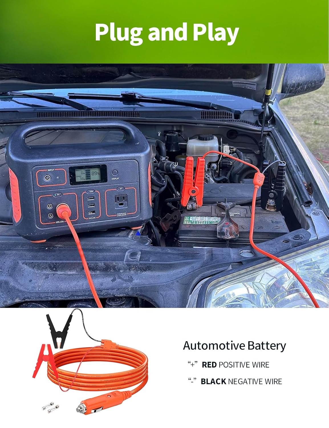 Cabo de Carregamento de Bateria de Carro 12V, 6,6FT 14AWG com Plugue para Isqueiro e Clipes de Jacaré. Ideal para carregar baterias de chumbo-ácido de automóveis, este cabo possui um fusível de 15A para proteção contra sobrecargas. A conexão fácil e rápida permite que você ligue seu carregador solar Jackery ou outros dispositivos compatíveis, garantindo eficiência e segurança no carregamento. Com 6,6 pés de comprimento, oferece flexibilidade e alcance para uso em diversas situações. Perfeito para quem busca praticidade e confiabilidade no carregamento de baterias.