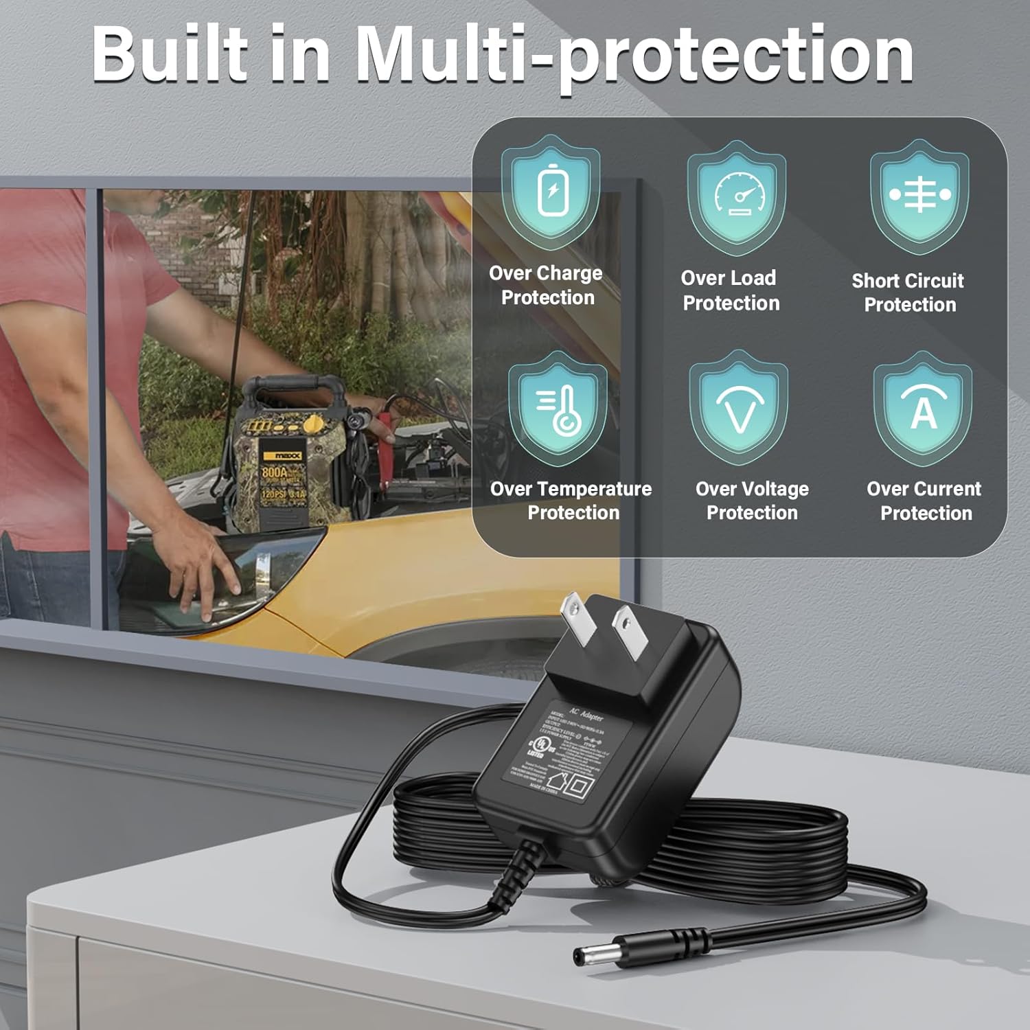 Duas Melhorias: O cabo de carregamento do adaptador para o jump starter EverStart Maxx foi projetado com dois plugs de energia que se encaixam de forma segura, aumentando a durabilidade e a segurança do produto. Com um comprimento de 6 pés (1,8 metros), o cabo permite que você conecte seu dispositivo a uma tomada com facilidade, superando a limitação dos cabos de 5 pés.