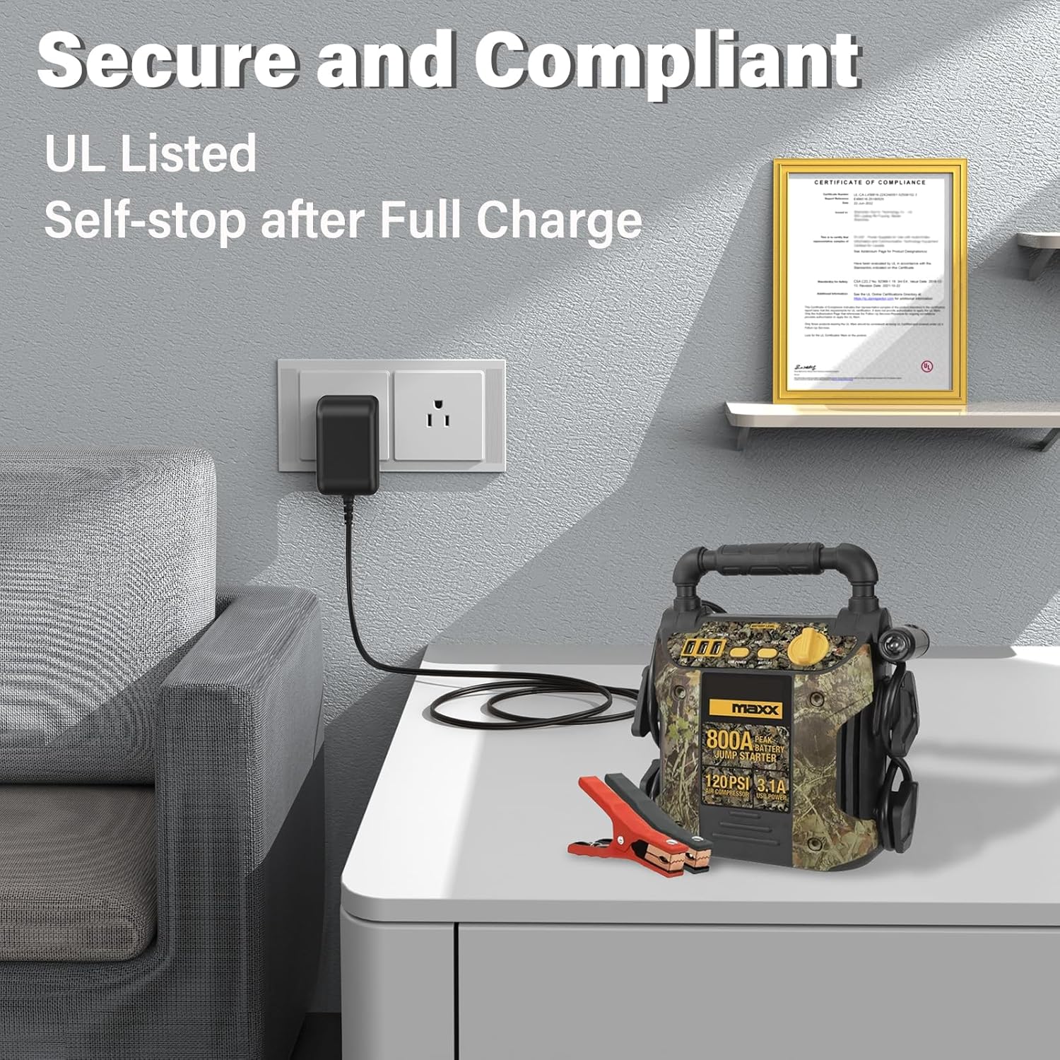 O adaptador de corda de alimentação 12V para o carregador EverStart Maxx J7CCE J7CE é a solução ideal para quem busca um carregador confiável e eficiente para seu jump starter de carro. Este produto é compatível exclusivamente com os modelos EverStart Maxx J7CCE, J7CE, J7-CCE e J7-CE, que possuem uma potência de 800 Ampères de pico. Com um compressor de ar de 120 PSI integrado, luz LED pivotante e três portas USB, este jump starter portátil é perfeito para emergências e viagens.