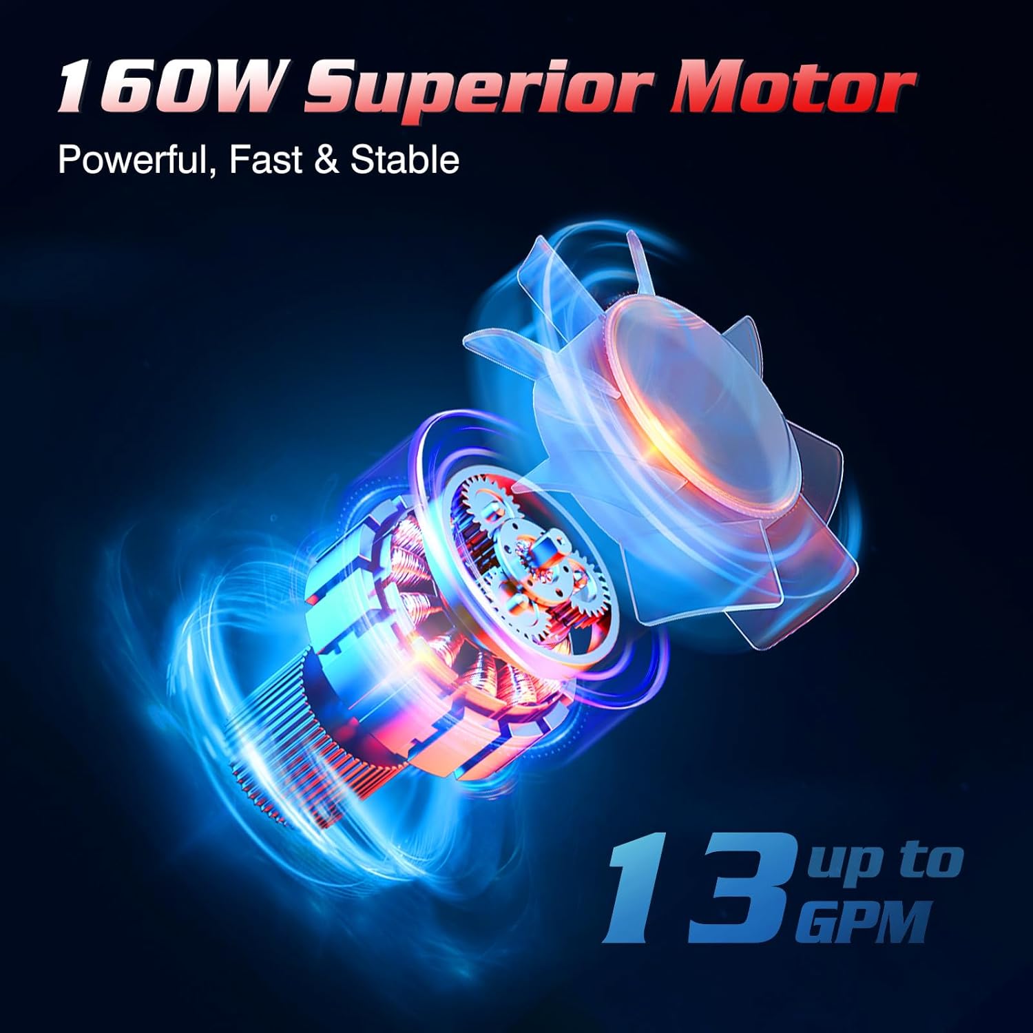 Com um motor potente de 160W, a bomba é capaz de puxar combustível a uma distância de até 16,4 pés e bombear a uma altura de 32,8 pés, facilitando o abastecimento em locais remotos ou em tanques elevados. Essa versatilidade resolve problemas complexos de abastecimento, tornando-a uma ferramenta indispensável para quem precisa de uma solução prática e eficaz.
