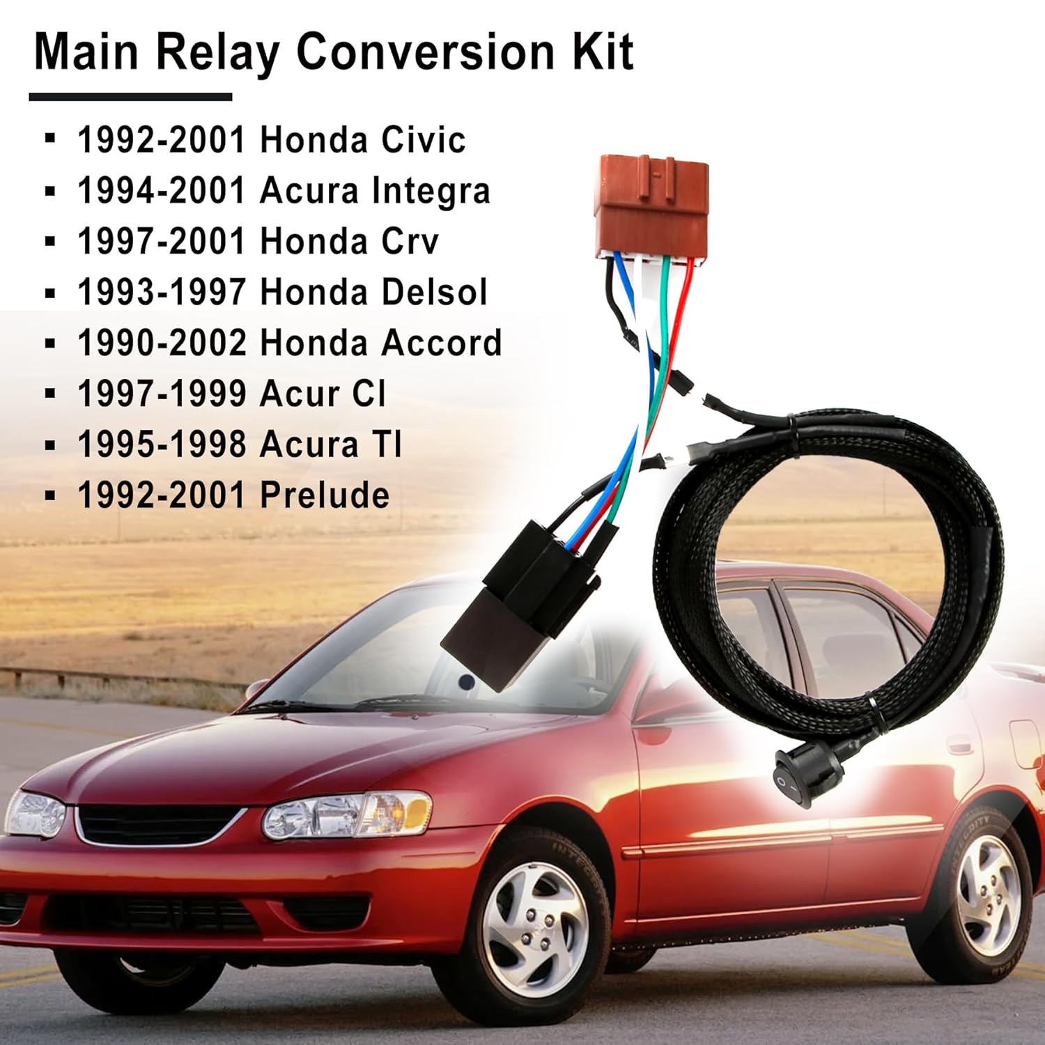 Kit de Conversão de Relé Principal 12V - Relé 4-PIN para Civic 92-01, Integra 94-01, CRV 97-01, Delsol 93-97, Accord 90-02, Acura CL 97-99, Acura TL 95-98, Accord 93-97