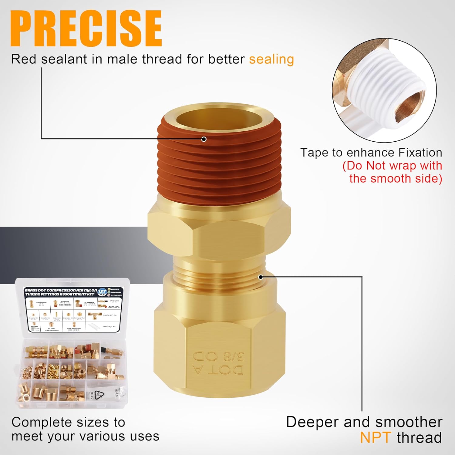 Este kit é ideal para uma variedade de aplicações, incluindo sistemas de ar, tubulação de cobre em sistemas de freio a ar, reparos em automóveis e caminhões, assentos operados a ar, manômetros, buzinas de ar, oficinas industriais, conexões de freio a ar, conexões de mangueiras de máquinas de reboque e reparos em cortadores de grama.