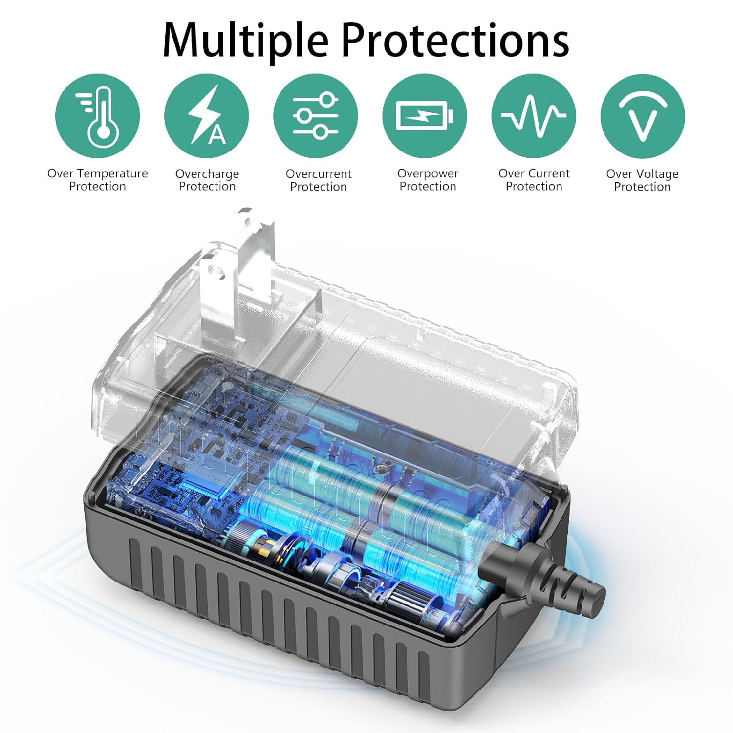 Este carregador é projetado com um cabo de alimentação que incorpora múltiplas proteções, incluindo proteção contra sobrecorrente, sobretensão, curto-circuito e sobretemperatura. Essas características garantem um carregamento estável e seguro, prolongando a vida útil da sua bateria e evitando danos.