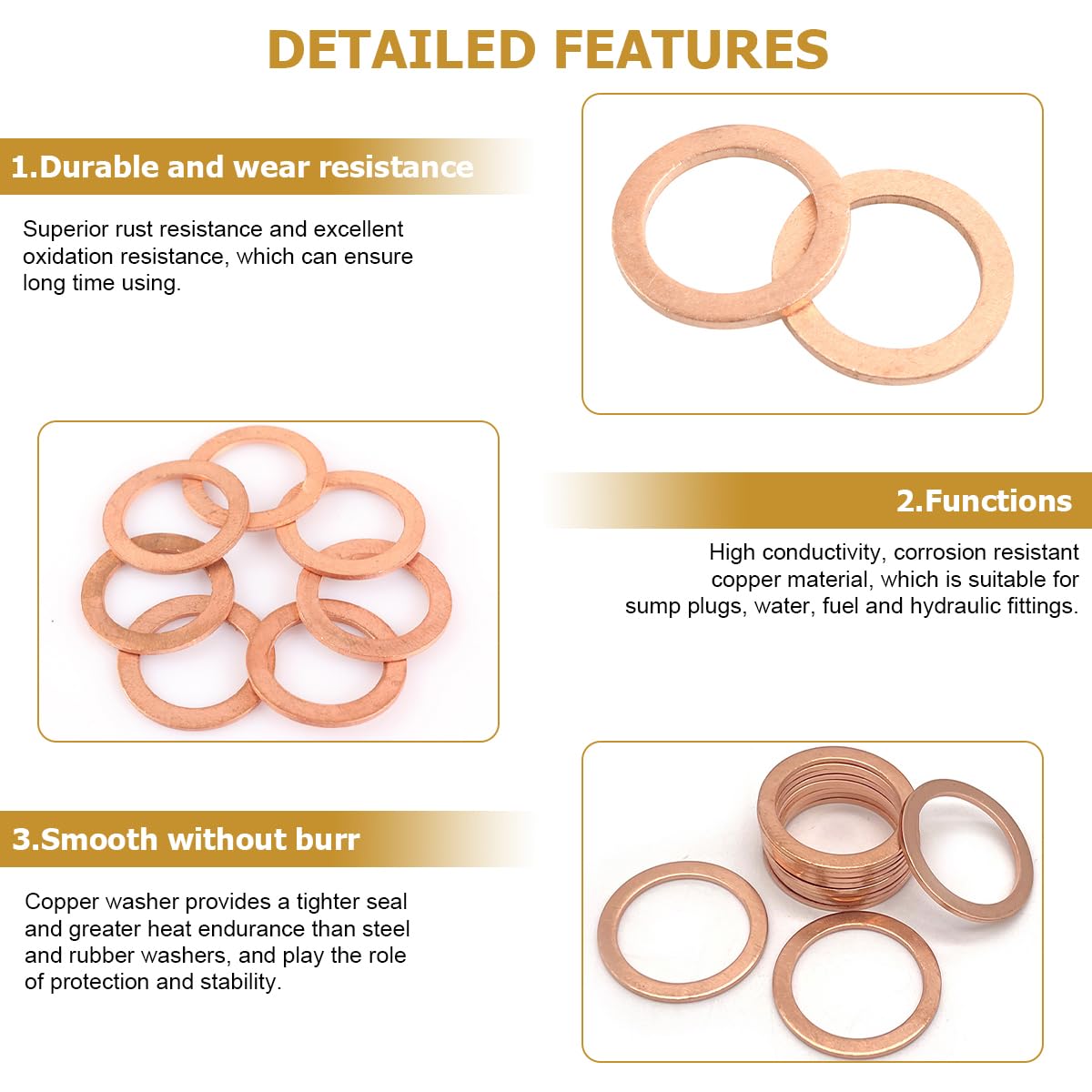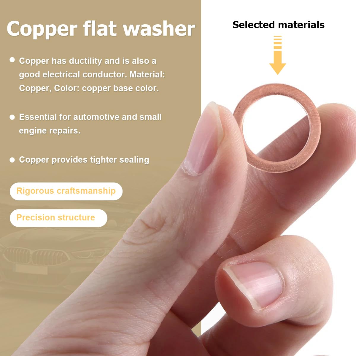 This washer is marketed for automotive sealing, but I used it as an electrical conductor for a custom project requiring precise tolerances. The 14.3mm inner diameter and 20.2mm outer diameter are accurate, and the 0.9mm thickness is consistent. The copper is clean and conductive, making it ideal for my application. Very pleased with the quality and performance.