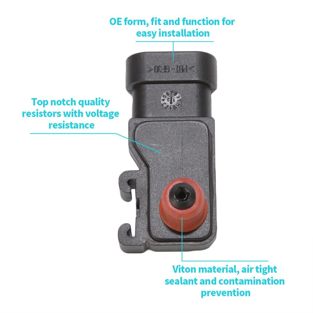 Received the MAP sensor for a 2005 Grand Am with a 3400. Right out of the box i noticed the plastic case was not the same as the one i broke taking off. The case fits into a spring clip on this vehicle so It seemed kind of important that this be the same. I was able to put it in place and squeeze the clip so that it holds it in place. The second thing I noticed was that this one had the rubber seal and the one I took off just had a rubber inlet that fit into a hose. I just took the seal off and it fit perfectly. I have had this product installed for about a month with no issues. Only reason for 4 instead of 5 stars it the fitment issues which were remedied without any extra effort. Seems like an ok product…or a Phenomenal product for the price (10x cheaper than anything at any autoparts store)