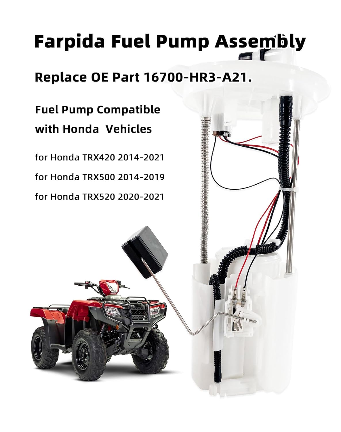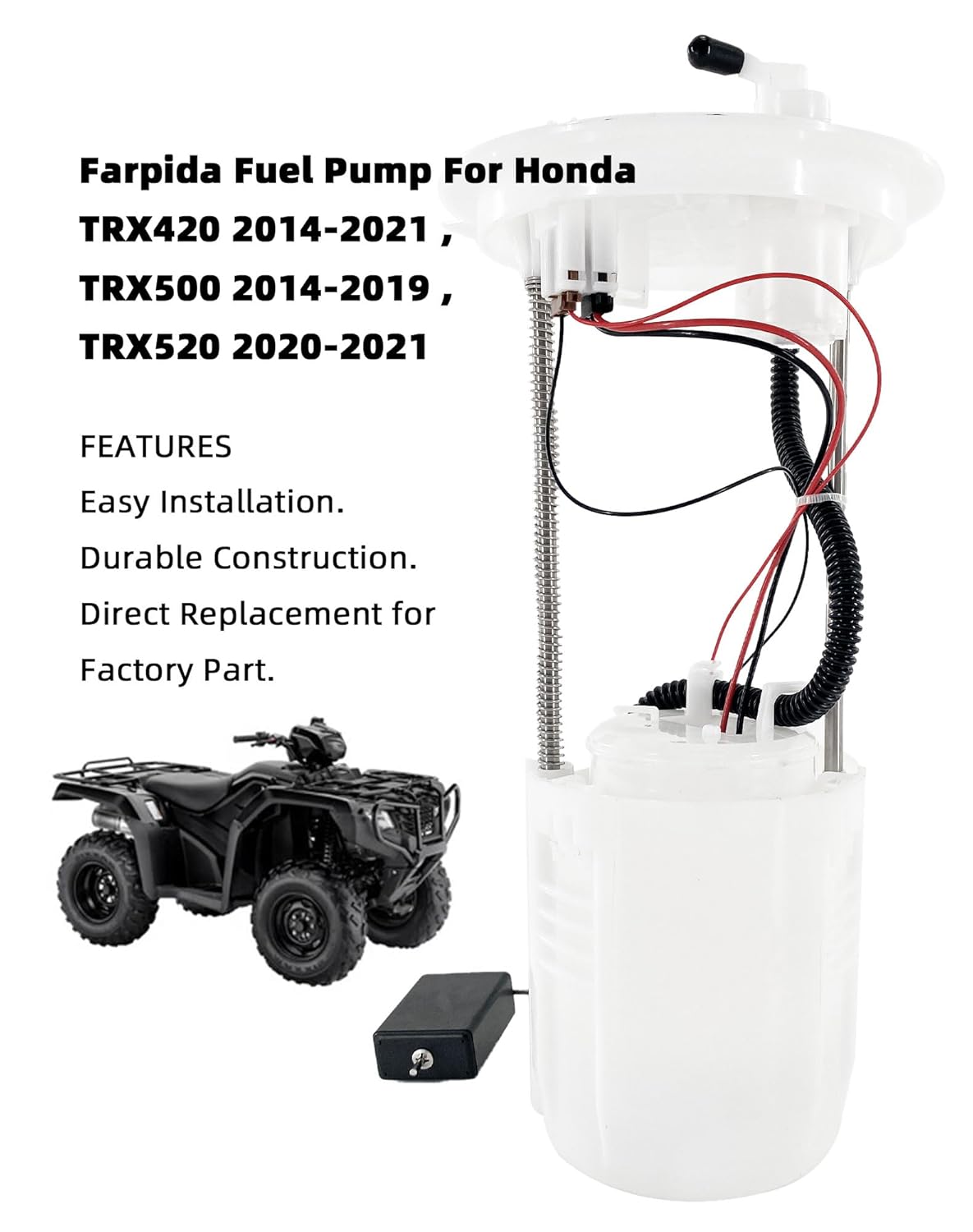 Does not fit a 2018 Honda 420 rancher. Part is correct but pump assembly is too tall to fit in the tank. Had to take guys out it and install them in factory pump housing to make work. Do not buy just save urself the time and buy a factory one